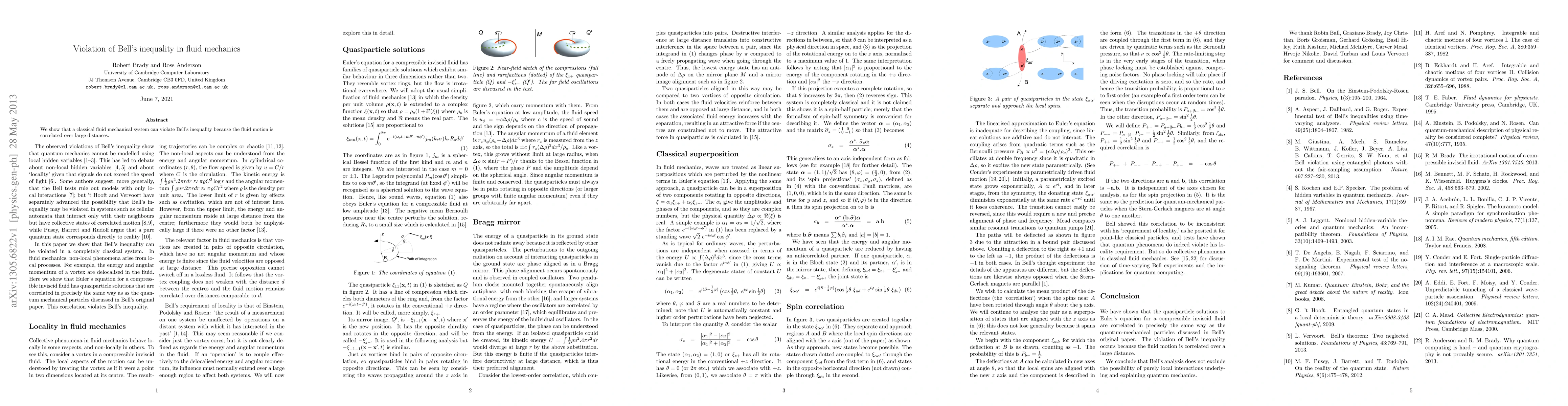 A classical fluid mechanical system can violate Bell's inequality due to correlated motion over large distances, challenging traditional understanding of quantum mechanics.