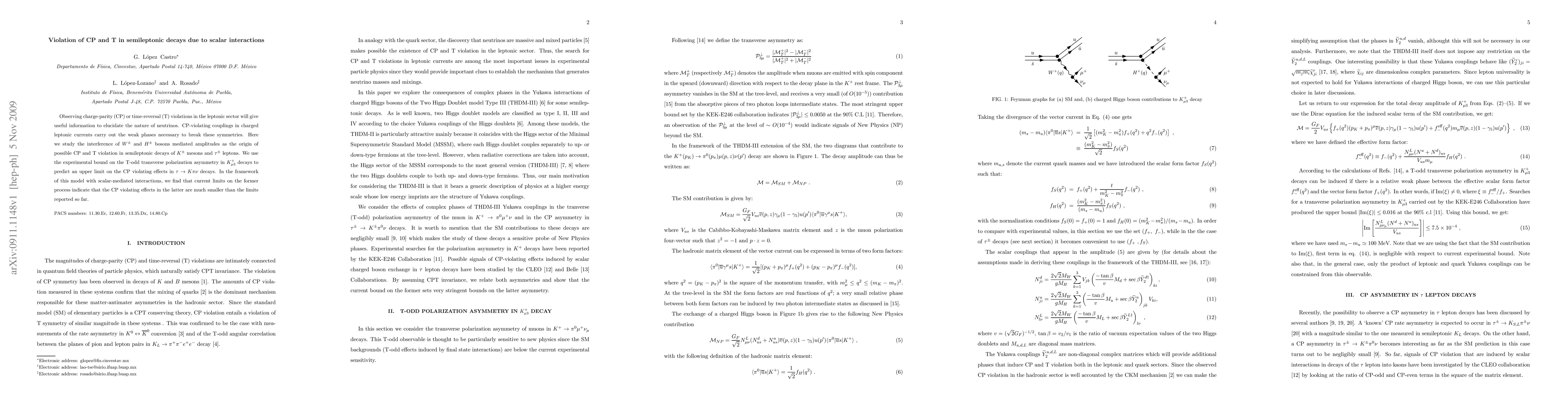 Observing charge-parity (CP) or time-reversal (T) violations in the leptonic sector will give useful information to elucidate the nature of neutrinos. CP-violating couplings in charged leptonic currents carry out the weak phases necessary to break these symmetries. Here we study the interference of $W^{\pm}$ and $H^{\pm}$ bosons mediated amplitudes as the origin of possible CP and T violation in semileptonic decays of $K^{\pm}$ mesons and $\tau^{\pm}$ leptons. We use the experimental bound on the T-odd transverse polarization asymmetry in $K^+_{\mu 3}$ decays to predict an upper limit on the CP violating effects in $\tau \to K \pi \nu$ decays. In the framework of this model with scalar-mediated interactions, we find that current limits on the former process indicate that the CP violating effects in the latter are much smaller than the limits reported so far.