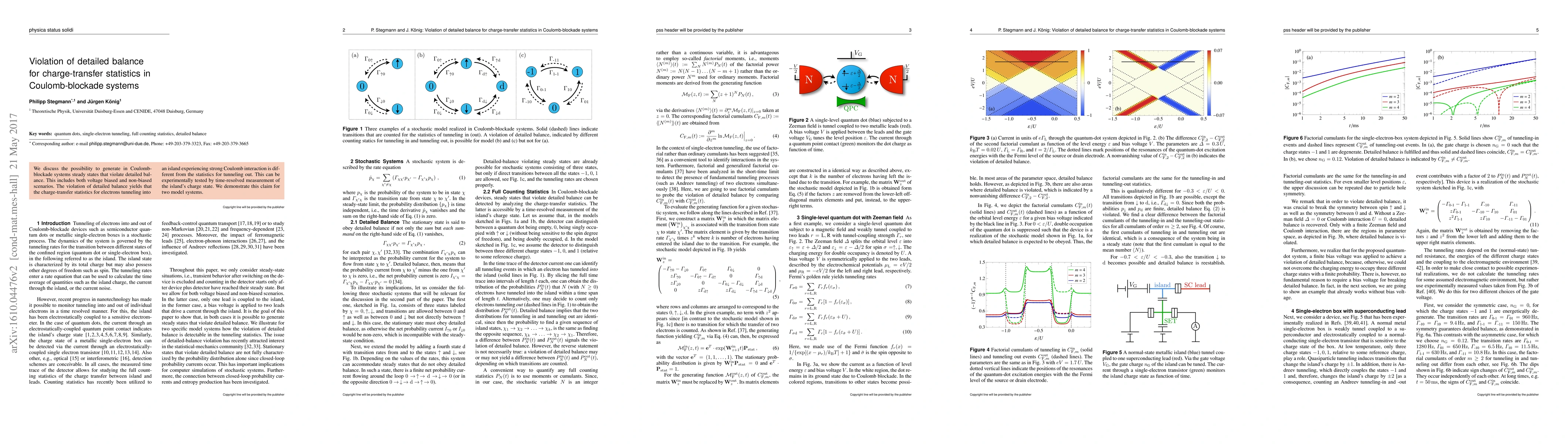 Two-line summary: This paper explores the generation of steady states in Coulomb-blockade systems that violate detailed balance, leading to asymmetric charge-transfer statistics for electrons tunneling in and out. Experimental verification through time-resolved charge-state measurements is proposed, with demonstrations in two model systems.