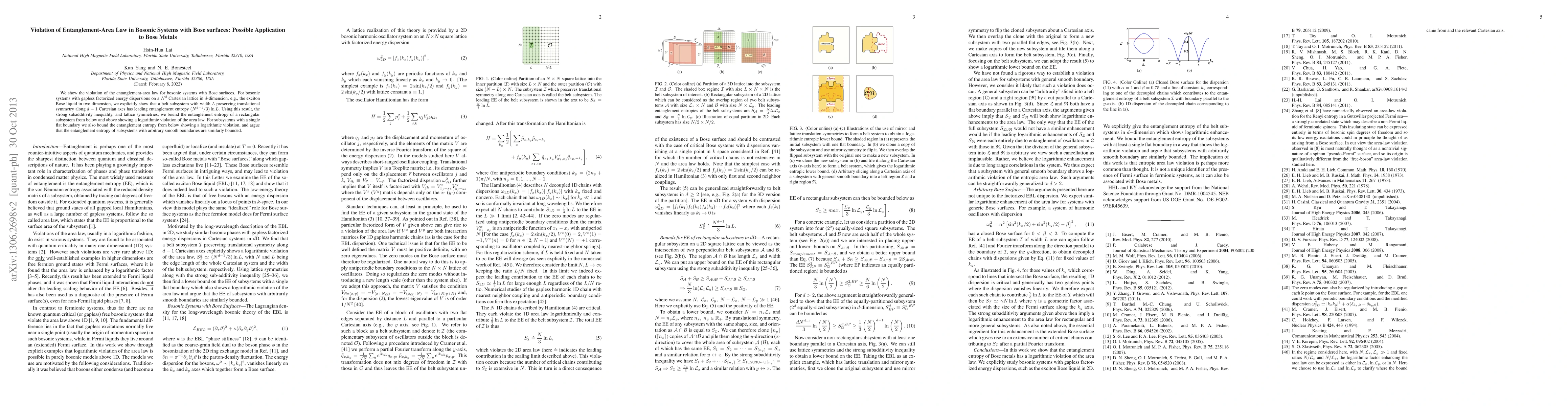 This paper demonstrates a violation of the entanglement-area law in bosonic systems with Bose surfaces, showing that subsystems with smooth boundaries exhibit logarithmic rather than linear scaling of entanglement entropy. This finding suggests potential applications to understanding Bose metals.