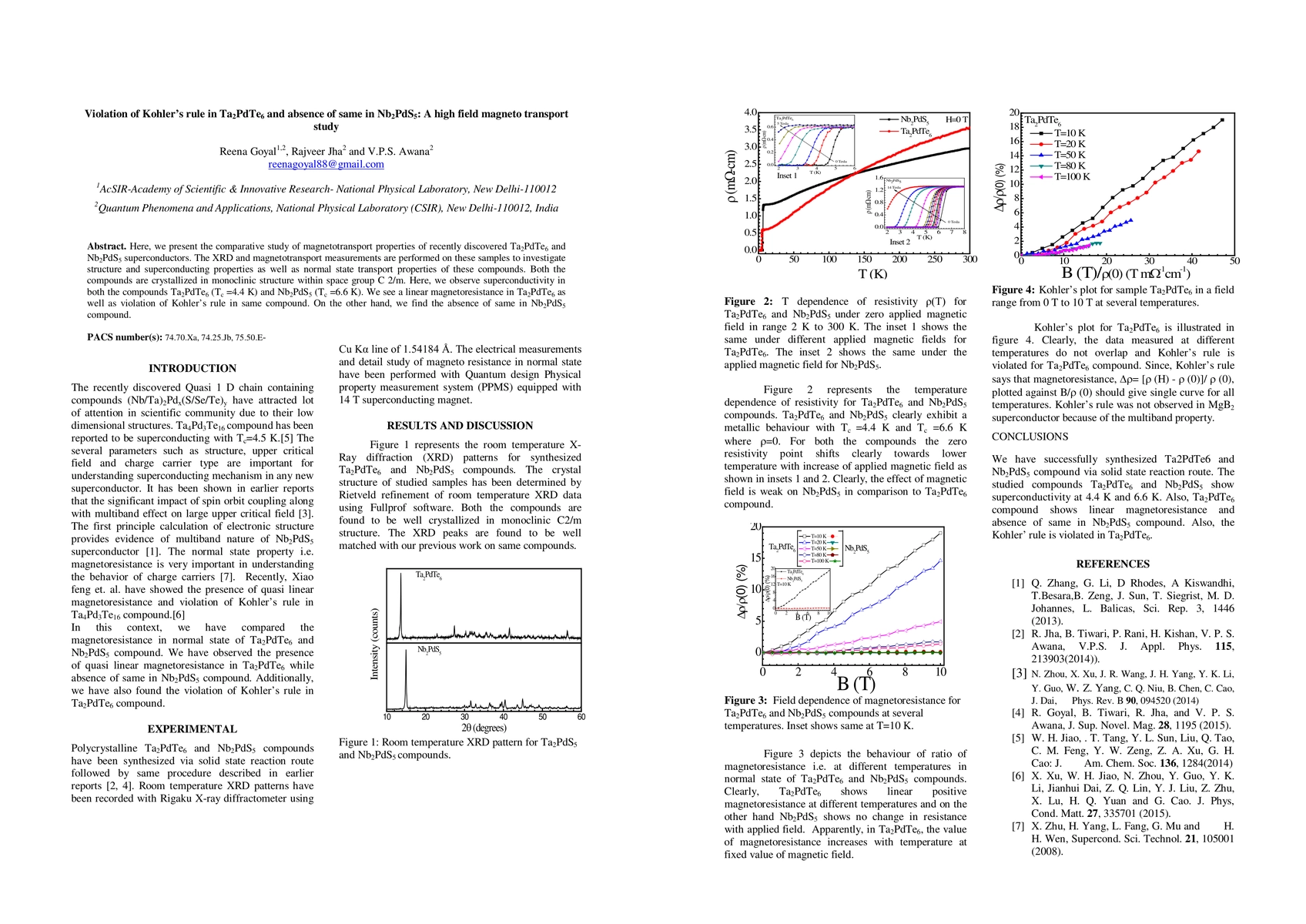Here, we present the comparative study of magnetotransport properties of recently discovered Ta2PdTe6 and Nb2PdS5 superconductors. The XRD and magnetotransport measurements are performed on these samples to investigate structure and superconducting properties as well as normal state transport properties of these compounds. Both the compounds are crystallized in monoclinic structure within space group C2m. Here, we observe superconductivity in both the compounds Ta2PdTe6 (Tc =4.4 K) and Nb2PdS5 (Tc =6.6 K). We see a linear magnetoresistance in Ta2PdTe6 as well as violation of Kohler rule in same compound. On the other hand, we find the absence of same in Nb2PdS5 compound.