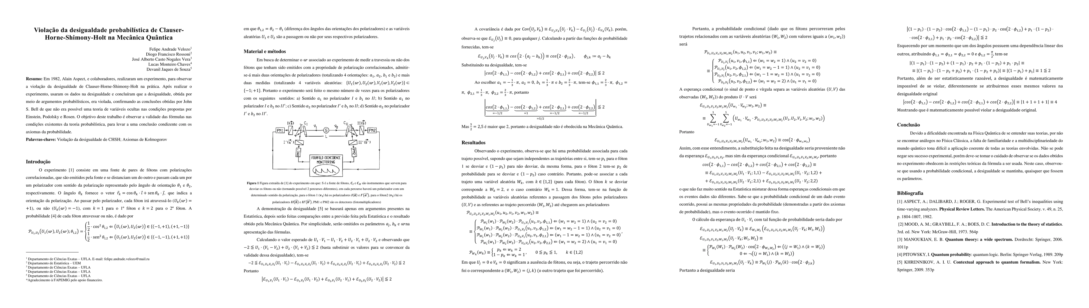 This paper investigates the violation of the Clauser-Horne-Shimony-Holt (CHSH) inequality in quantum mechanics, confirming earlier experimental results by Alain Aspect that support John S. Bell's conclusions against hidden variable theories. The study aims to verify the CHSH inequality's validity within the probabilistic framework.