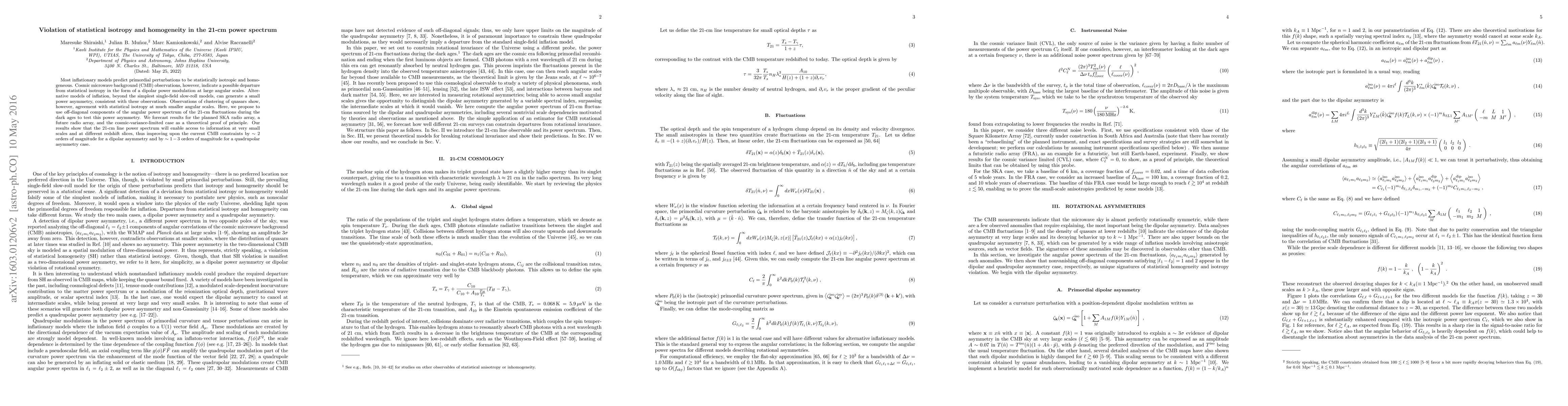 This paper investigates deviations from statistical isotropy and homogeneity in the 21-cm power spectrum during the dark ages, proposing that SKA radio array observations can detect small power asymmetries, potentially revealing alternative inflationary models beyond the simplest single-field slow-roll models. The study forecasts significant improvements over current CMB constraints in detecting dipolar and quadrupolar asymmetries.
