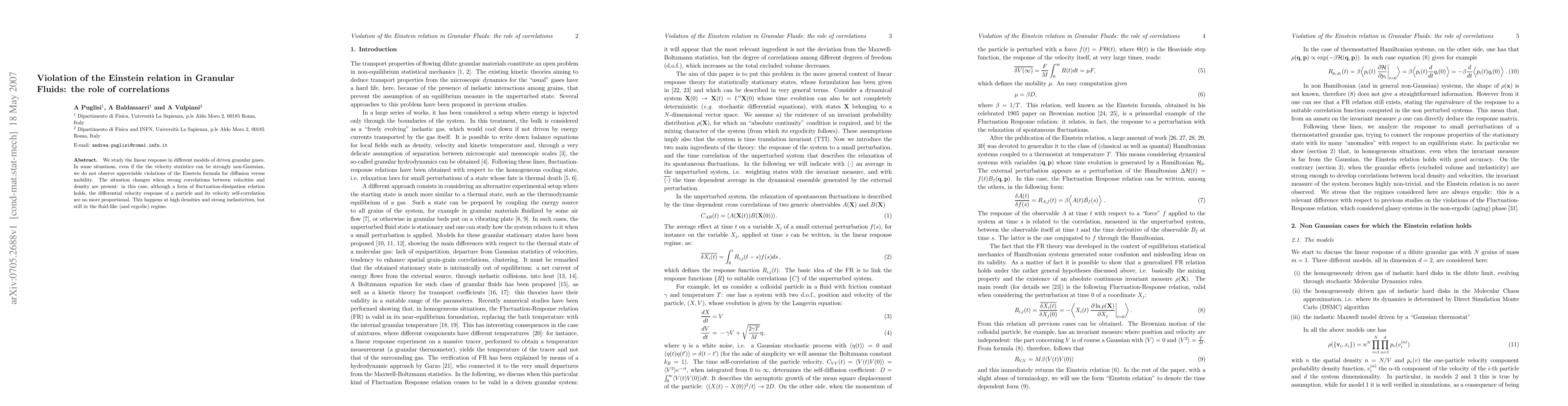We study the linear response in different models of driven granular gases. In some situations, even if the the velocity statistics can be strongly non-Gaussian, we do not observe appreciable violations of the Einstein formula for diffusion versus mobility. The situation changes when strong correlations between velocities and density are present: in this case, although a form of fluctuation-dissipation relation holds, the differential velocity response of a particle and its velocity self-correlation are no more proportional. This happens at high densities and strong inelasticities, but still in the fluid-like (and ergodic) regime.