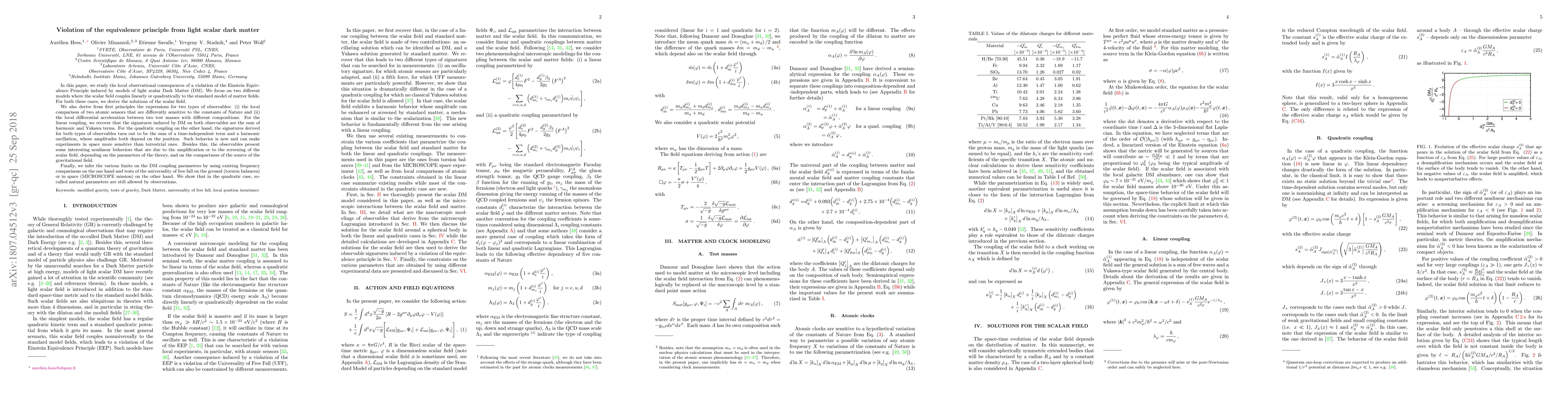 In this paper, we study the local observational consequences of a violation of the Einstein Equivalence Principle induced by models of light scalar Dark Matter (DM). We focus on two different models where the scalar field couples linearly or quadratically to the standard model of matter fields. For both these cases, we derive the solutions of the scalar field. We also derive from first principles the expressions for two types of observables: (i) the local comparison of two atomic sensors that are differently sensitive to the constants of Nature and (ii) the local differential acceleration between two test-masses with different compositions. For the linear coupling, we recover that the signatures induced by DM on both observables are the sum of harmonic and Yukawa terms. For the quadratic coupling on the other hand, the signatures derived for both types of observables turn out to be a sum of a time independent term and of an harmonic oscillation, whose amplitudes both depend on the position. Such a behavior is new and can make experiments in space more sensitive than terrestrial ones. Besides, the observables present some interesting non-linear behaviors that are due to the amplification or to the screening of the scalar-field, depending on the parameters of the theory, and on the compactness of the source of the gravitational field. Finally, we infer the various limits on the DM coupling parameters by using existing frequency comparisons on the one hand and tests of the universality of free fall on the ground (torsion balances) or in space (MICROSCOPE mission) on the other hand. We show that in the quadratic case, so-called natural parameters are still allowed by observations.