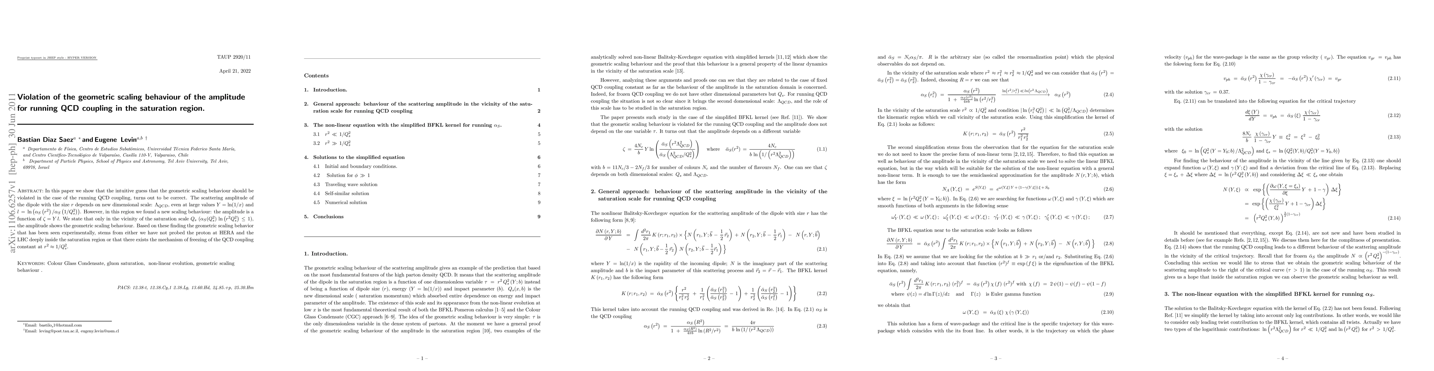 This paper demonstrates that the geometric scaling behavior of the running QCD coupling is violated in the saturation region, revealing a new scaling dependent on $\Lambda_{QCD}$ and a new variable $\zeta = Y\,l$. The amplitude only exhibits geometric scaling near the saturation scale $Q_s$, suggesting experimental observations may not have probed deeply enough or that there is a mechanism freezing the QCD coupling constant.