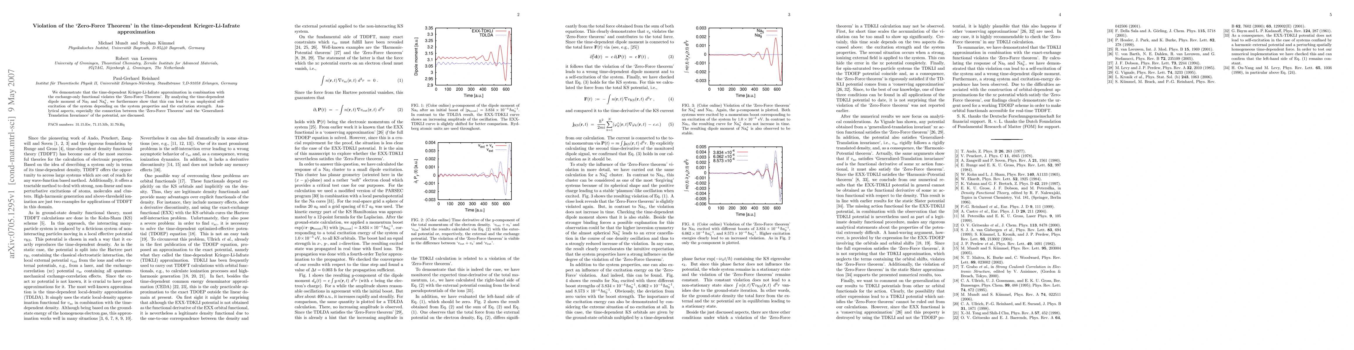 This paper shows that the time-dependent Krieger-Li-Iafrate approximation, when used with an exchange-only functional, violates the `Zero-Force Theorem', leading to an unphysical self-excitation in systems like Na5 and Na9+. The study also explores the relationship between this violation and the `Generalized-Translation Invariance' of the potential.