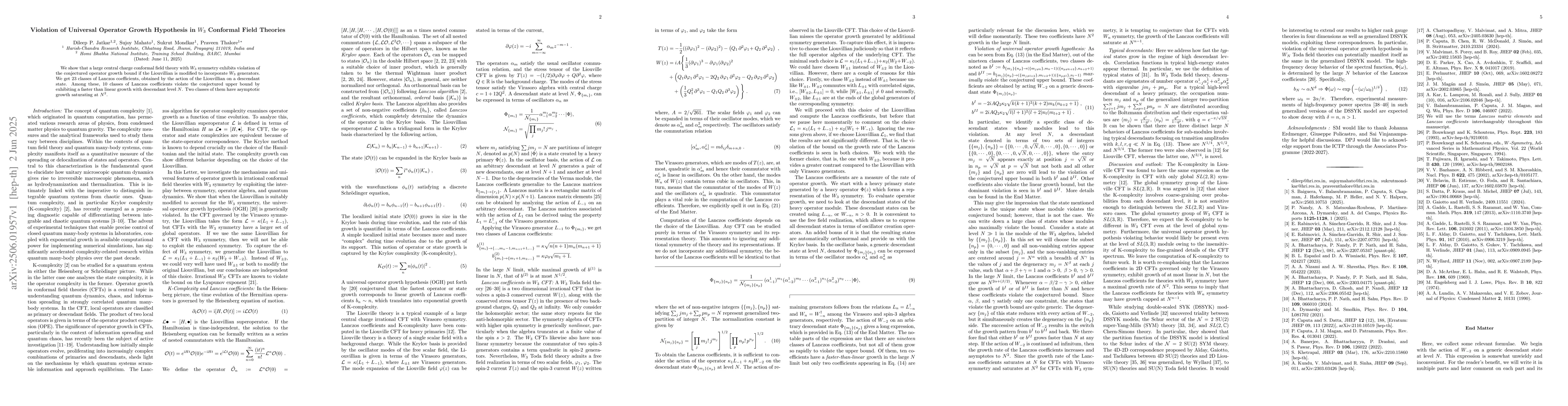 The paper demonstrates that incorporating $W_3$ generators into the Liouvillian leads to violations of the operator growth hypothesis, identifying specific Lanczos coefficient growth patterns.
