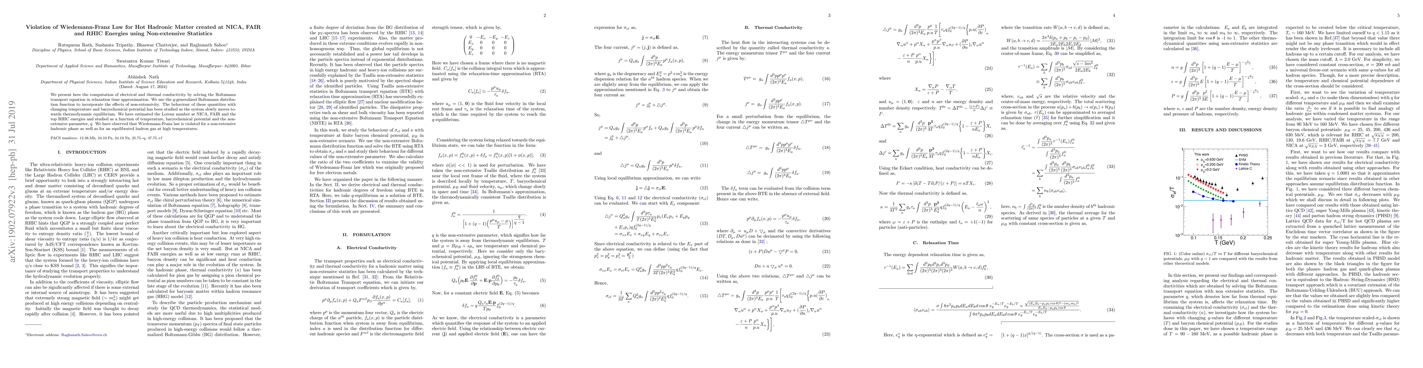 This study investigates the violation of the Wiedemann-Franz law in hot hadronic matter at NICA, FAIR, and RHIC energies using non-extensive statistics. The electrical and thermal conductivities are computed via the Boltzmann transport equation, revealing deviations from the law in non-extensive hadronic phases and equilibrated hadron gases at high temperatures.