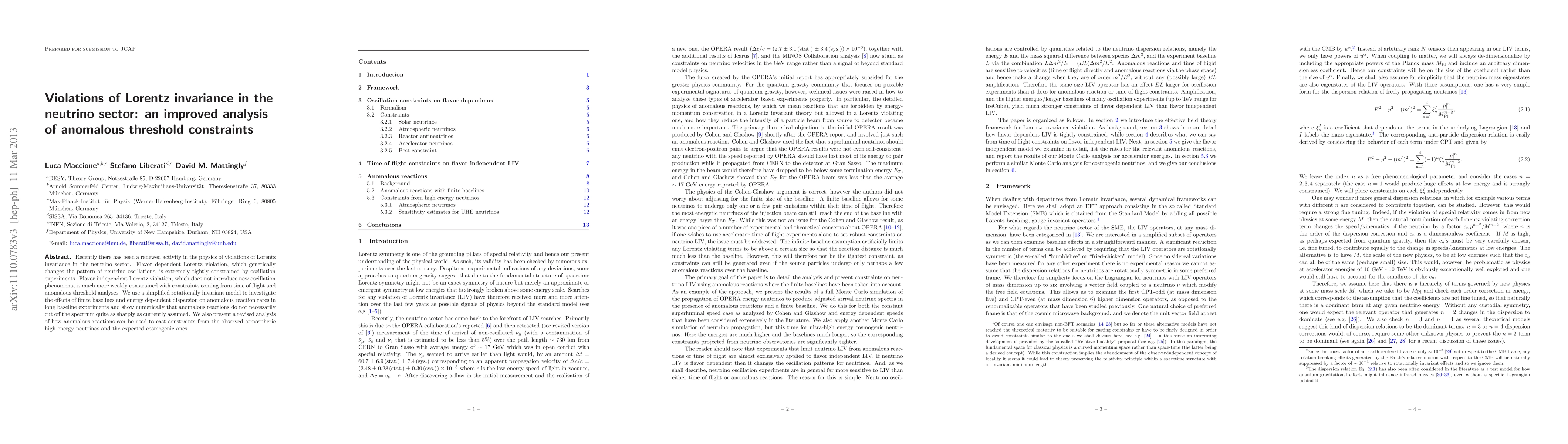 Recently there has been a renewed activity in the physics of violations of Lorentz invariance in the neutrino sector. Flavor dependent Lorentz violation, which generically changes the pattern of neutrino oscillations, is extremely tightly constrained by oscillation experiments. Flavor independent Lorentz violation, which does not introduce new oscillation phenomena, is much more weakly constrained with constraints coming from time of flight and anomalous threshold analyses. We use a simplified rotationally invariant model to investigate the effects of finite baselines and energy dependent dispersion on anomalous reaction rates in long baseline experiments and show numerically that anomalous reactions do not necessarily cut off the spectrum quite as sharply as currently assumed. We also present a revised analysis of how anomalous reactions can be used to cast constraints from the observed atmospheric high energy neutrinos and the expected cosmogenic ones.