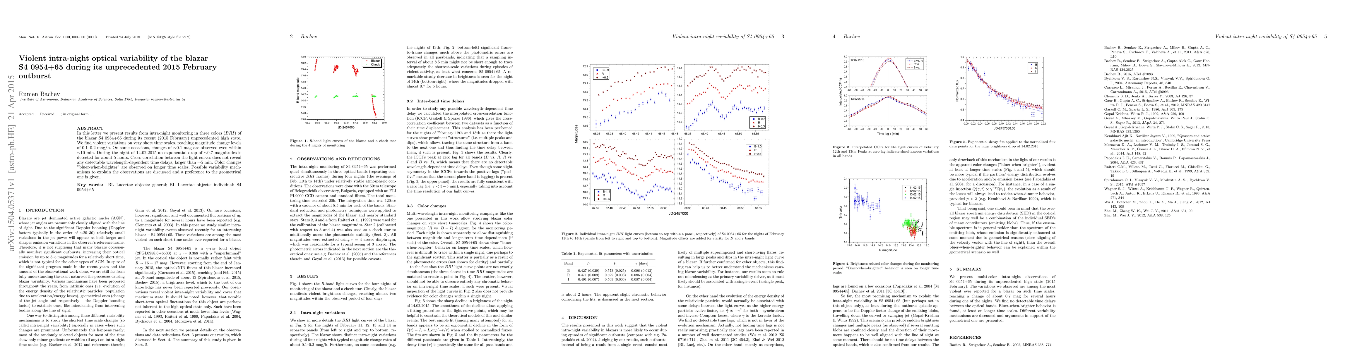 Blazar S4 0954+65 exhibited violent optical variability during its 2015 outburst, with magnitude changes of up to 0.2 mag/h. This is evidence for a geometric origin for the observed variability.
