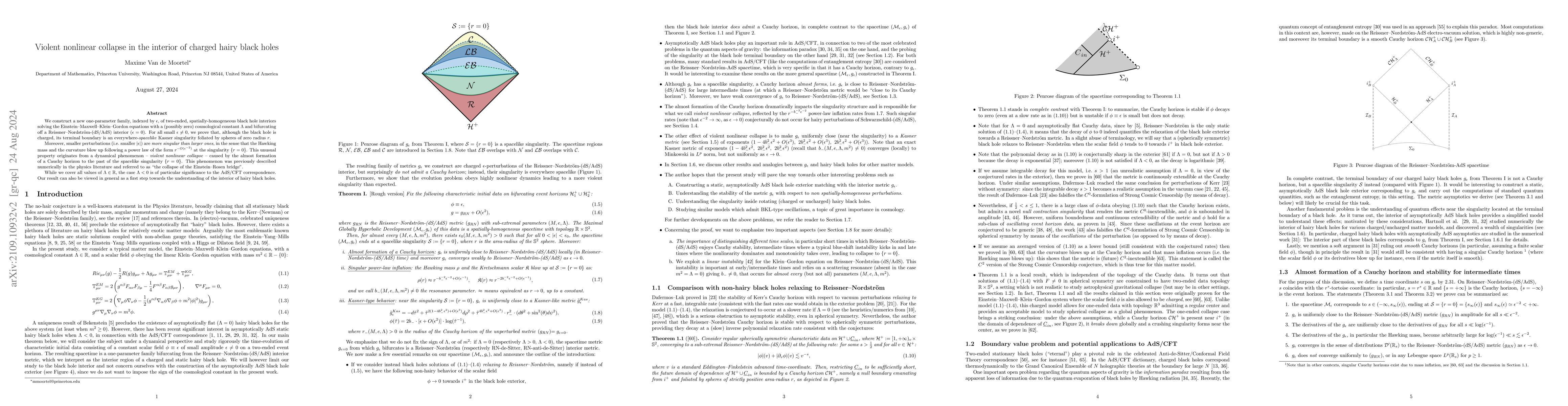 This paper constructs a new family of charged, hairy black hole interiors that undergo violent nonlinear collapse, leading to a spacelike Kasner singularity. Smaller perturbations result in more severe singularities, characterized by a power law blow-up in Hawking mass and curvature near the singularity.