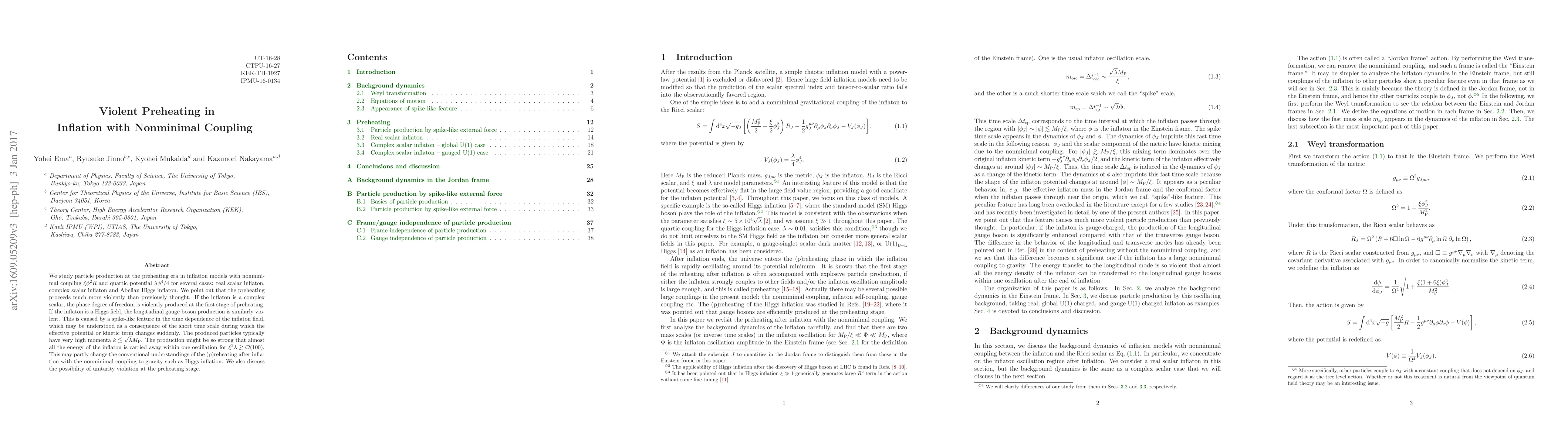 We study particle production at the preheating era in inflation models with nonminimal coupling $\xi \phi^2R$ and quartic potential $\lambda \phi^4/4$ for several cases: real scalar inflaton, complex scalar inflaton and Abelian Higgs inflaton. We point out that the preheating proceeds much more violently than previously thought. If the inflaton is a complex scalar, the phase degree of freedom is violently produced at the first stage of preheating. If the inflaton is a Higgs field, the longitudinal gauge boson production is similarly violent. This is caused by a spike-like feature in the time dependence of the inflaton field, which may be understood as a consequence of the short time scale during which the effective potential or kinetic term changes suddenly. The produced particles typically have very high momenta $k \lesssim \sqrt{\lambda}M_\text{P}$. The production might be so strong that almost all the energy of the inflaton is carried away within one oscillation for $\xi^2\lambda \gtrsim {\mathcal O}(100)$. This may partly change the conventional understandings of the (p)reheating after inflation with the nonminimal coupling to gravity such as Higgs inflation. We also discuss the possibility of unitarity violation at the preheating stage.