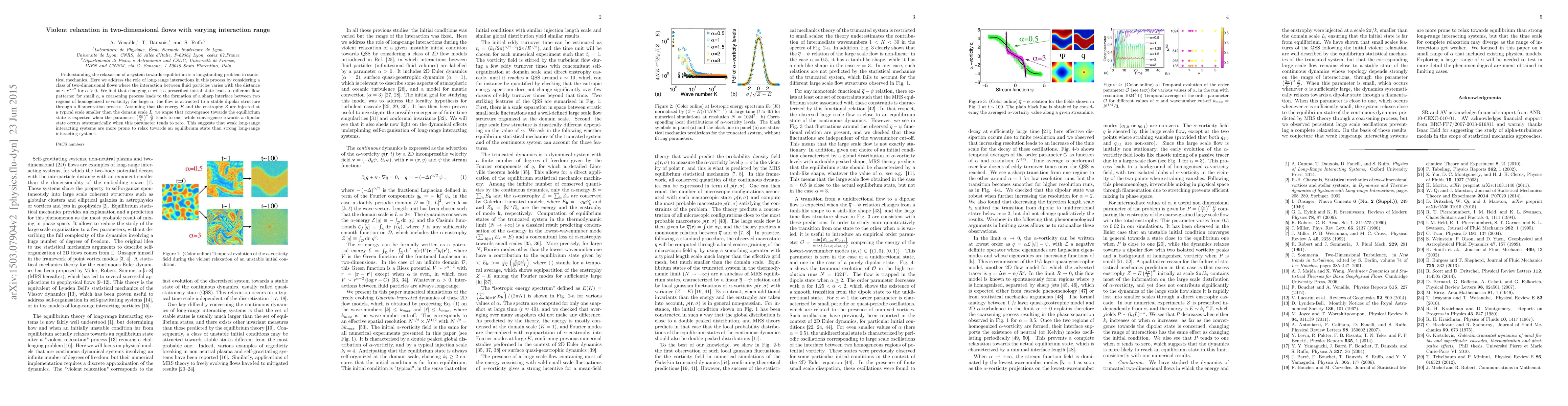 Understanding the relaxation of a system towards equilibrium is a longstanding problem in statistical mechanics. Here we address the role of long-range interactions in this process by considering a class of two-dimensional or geophysical flows where the interaction between fluid particles varies with the distance as $\sim$ r^($\alpha$--2) with $\alpha$ \textgreater{} 0. Previous studies in the Euler case $\alpha$ = 2 had shown convergence towards a variety of quasi-stationary states by changing the initial state. Unexpectedly, all those regimes are recovered by changing $\alpha$ with a prescribed initial state. For small $\alpha$, a coarsening process leads to the formation of a sharp interface between two regions of homogenized $\alpha$-vorticity; for large $\alpha$, the flow is attracted to a stable dipolar structure through a filamentation process.
