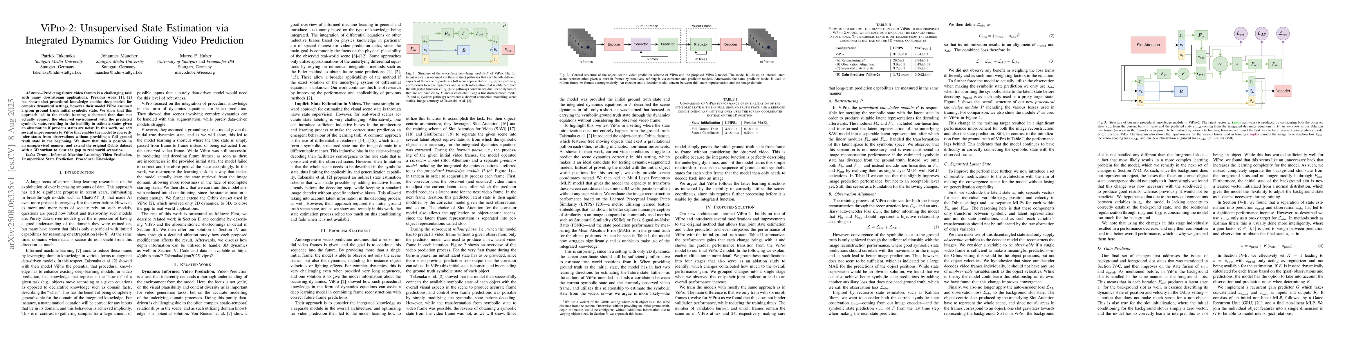 Predicting future video frames is a challenging task with many downstream applications. Previous work has shown that procedural knowledge enables deep models for complex dynamical settings, however their model ViPro assumed a given ground truth initial symbolic state. We show that this approach led to the model learning a shortcut that does not actually connect the observed environment with the predicted symbolic state, resulting in the inability to estimate states given an observation if previous states are noisy. In this work, we add several improvements to ViPro that enables the model to correctly infer states from observations without providing a full ground truth state in the beginning. We show that this is possible in an unsupervised manner, and extend the original Orbits dataset with a 3D variant to close the gap to real world scenarios.