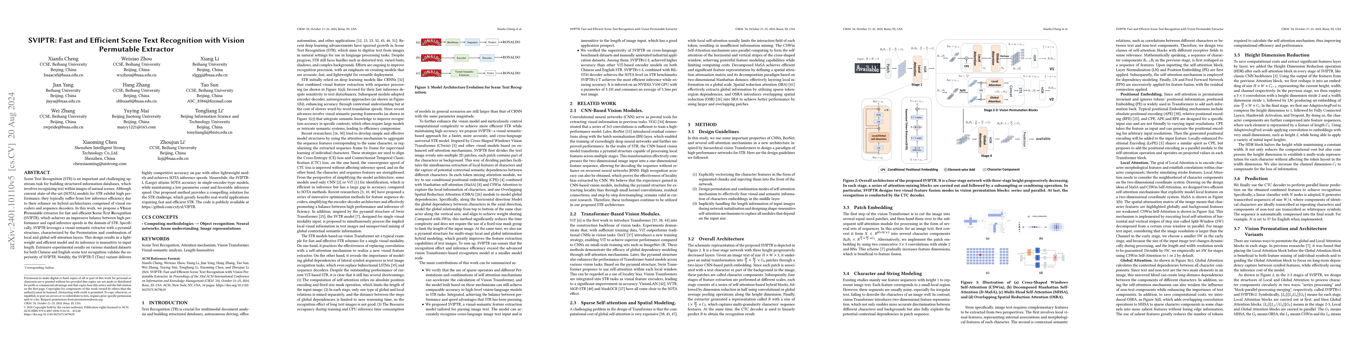 VIPTR is a novel vision permutable extractor designed for efficient scene text recognition, balancing high performance with rapid inference speeds. It employs a lightweight visual-semantic extractor with a pyramid structure and multiple self-attention layers, achieving state-of-the-art inference speeds while maintaining competitive recognition accuracy.