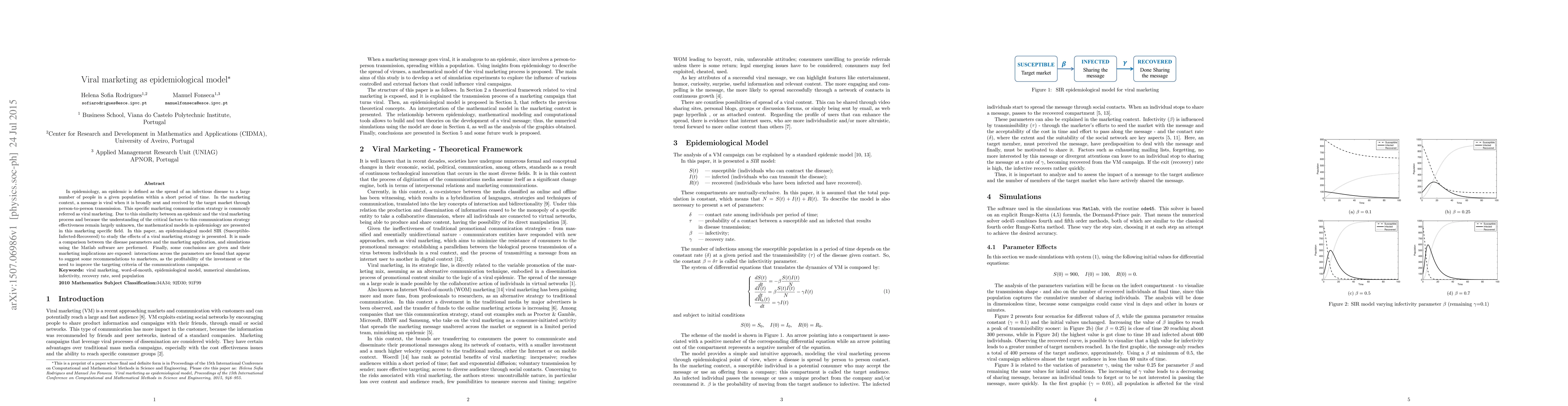The paper presents an innovative application of the SIR epidemiological model to analyze viral marketing processes, providing a mathematical framework for understanding and predicting viral marketing campaign performance.