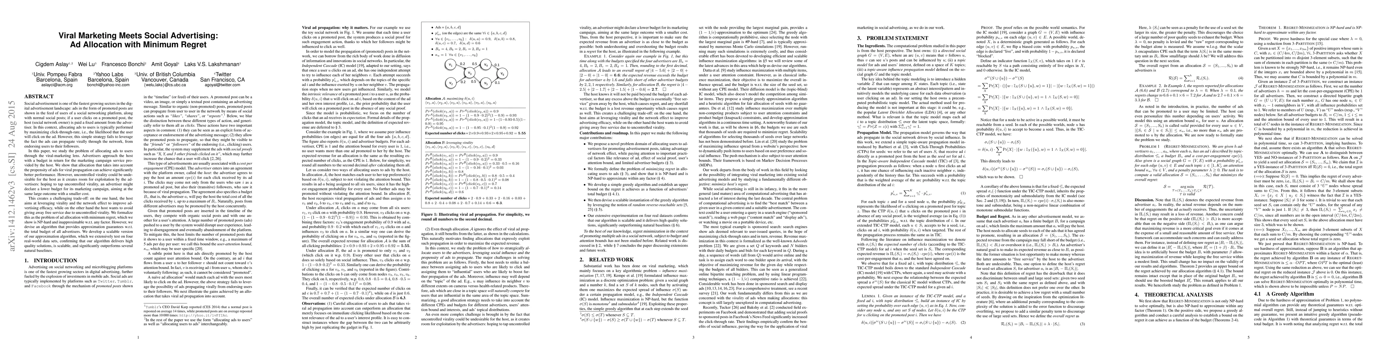 The paper presents a novel approach to ad allocation in social advertising by considering virality and budget constraints, formulating it as an NP-hard problem of minimum regret, and proposing a scalable approximation algorithm.