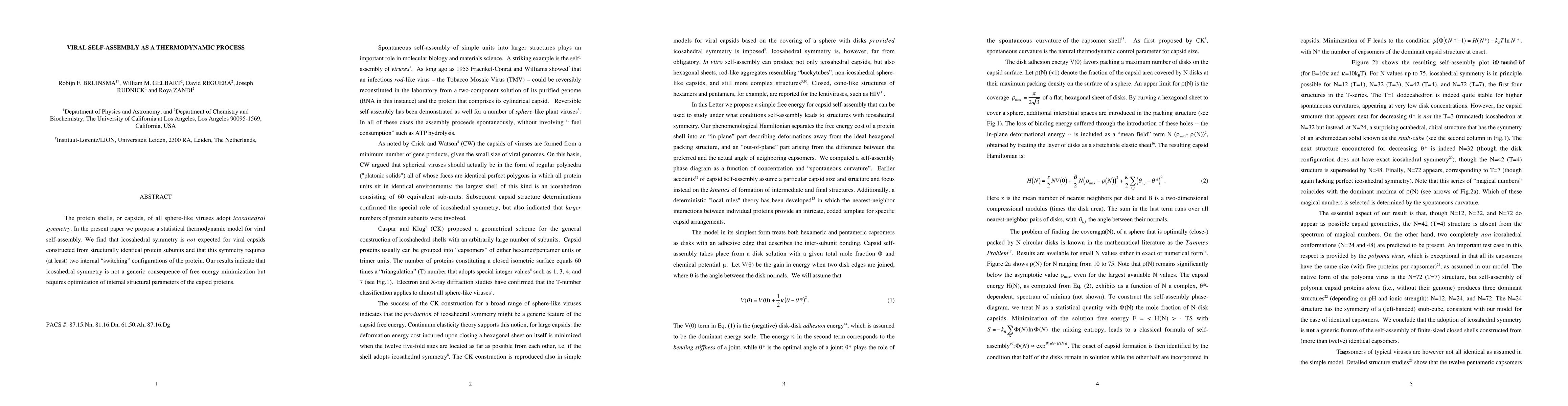 Researchers propose a thermodynamic model for viral self-assembly, finding that icosahedral symmetry requires at least two internal protein configurations, contradicting the assumption of generic free energy minimization.