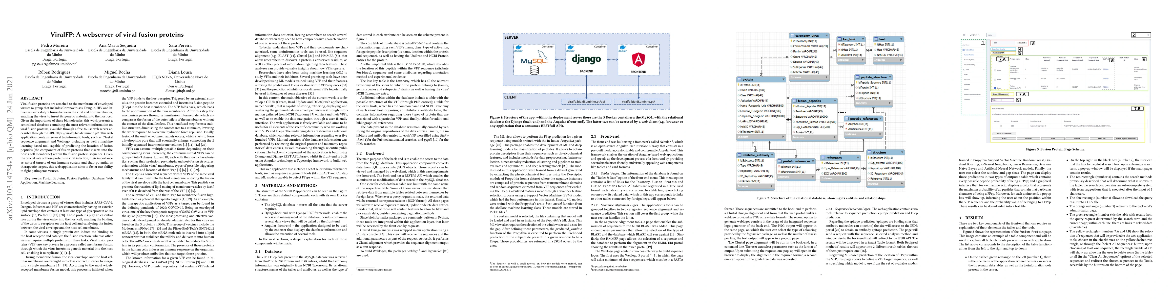 ViralFP is a webserver providing a centralized database for viral fusion proteins, including bioinformatics tools and machine learning for predicting fusion peptides. This resource aims to enhance understanding and combat pathogenic viruses by targeting these crucial viral infection mediators.