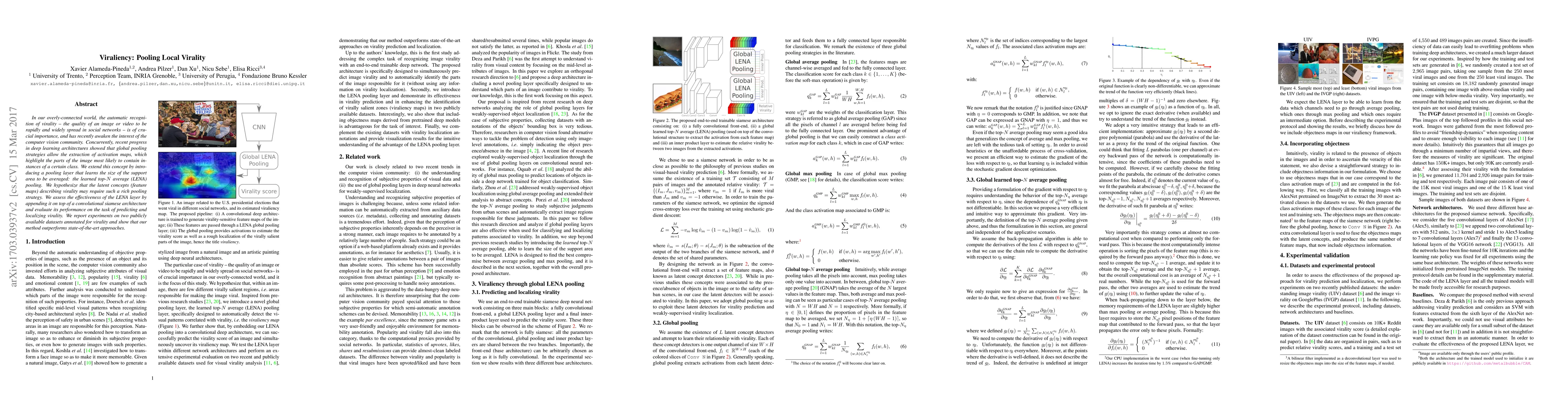 In our overly-connected world, the automatic recognition of virality - the quality of an image or video to be rapidly and widely spread in social networks - is of crucial importance, and has recently awaken the interest of the computer vision community. Concurrently, recent progress in deep learning architectures showed that global pooling strategies allow the extraction of activation maps, which highlight the parts of the image most likely to contain instances of a certain class. We extend this concept by introducing a pooling layer that learns the size of the support area to be averaged: the learned top-N average (LENA) pooling. We hypothesize that the latent concepts (feature maps) describing virality may require such a rich pooling strategy. We assess the effectiveness of the LENA layer by appending it on top of a convolutional siamese architecture and evaluate its performance on the task of predicting and localizing virality. We report experiments on two publicly available datasets annotated for virality and show that our method outperforms state-of-the-art approaches.
