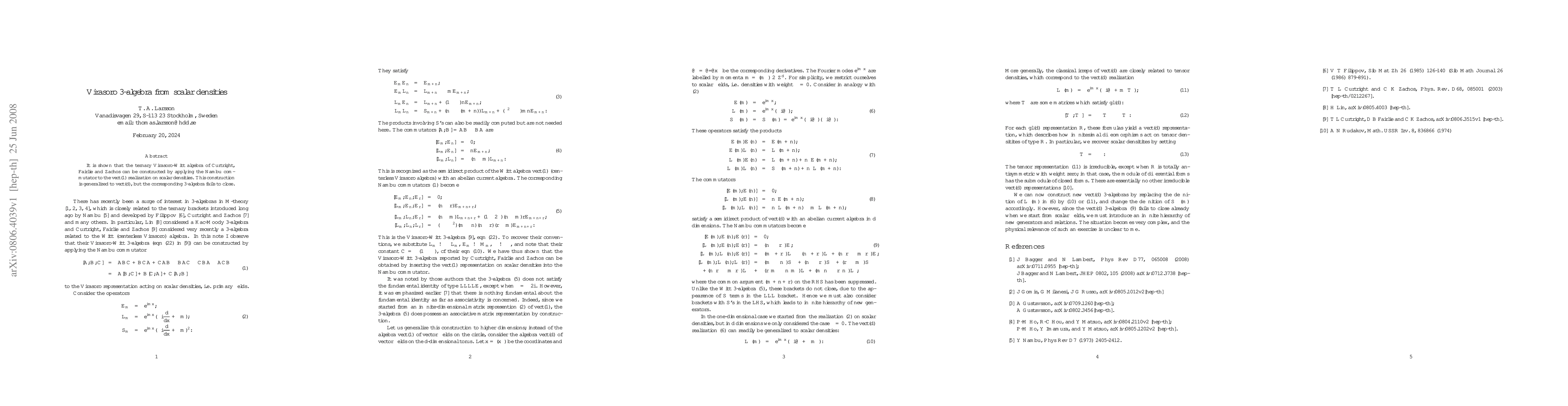 The paper demonstrates how the ternary Virasoro-Witt algebra can be derived using the Nambu commutator on scalar densities, specifically through the vect(1) realization, and extends this to higher dimensions, though the resulting 3-algebra does not close.