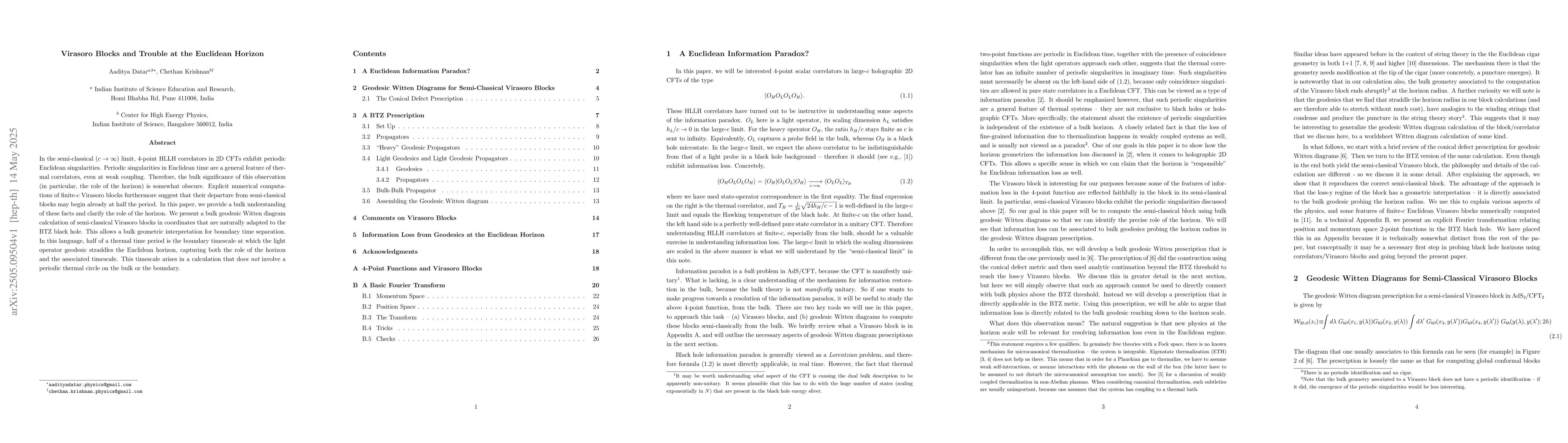 This paper clarifies the role of the horizon in 2D CFTs, showing that half a thermal time period marks the boundary timescale where the light operator geodesic crosses the Euclidean horizon, capturing both the horizon's significance and its timescale.
