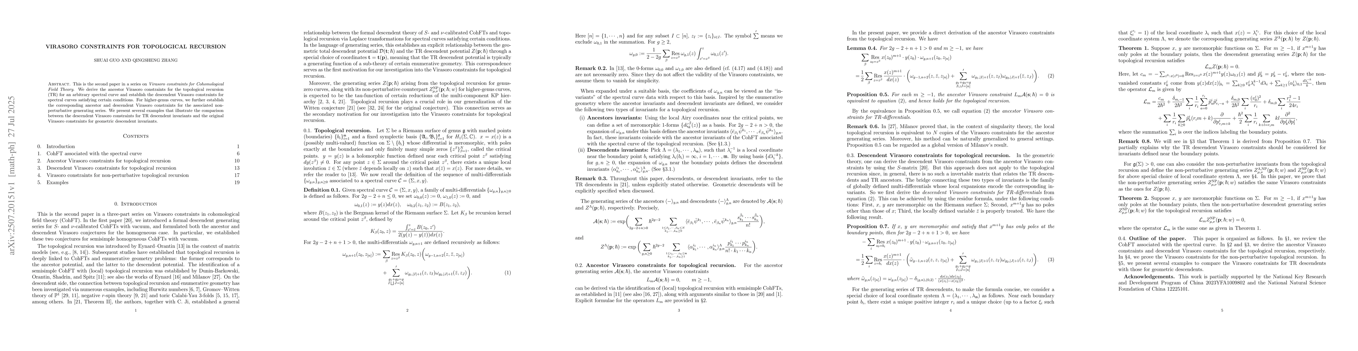 This is the second paper in a series on {\it Virasoro constraints for Cohomological Field Theory}. We derive the ancestor Virasoro constraints for the topological recursion (TR) for an arbitrary spectral curve and establish the descendent Virasoro constraints for spectral curves satisfying certain conditions. For higher-genus curves, we further establish the corresponding ancestor and descendent Virasoro constraints for the associated non-perturbative generating series. We present several examples that illustrate the comparison between the descendent Virasoro constraints for TR descendent invariants and the original Virasoro constraints for geometric descendent invariants.