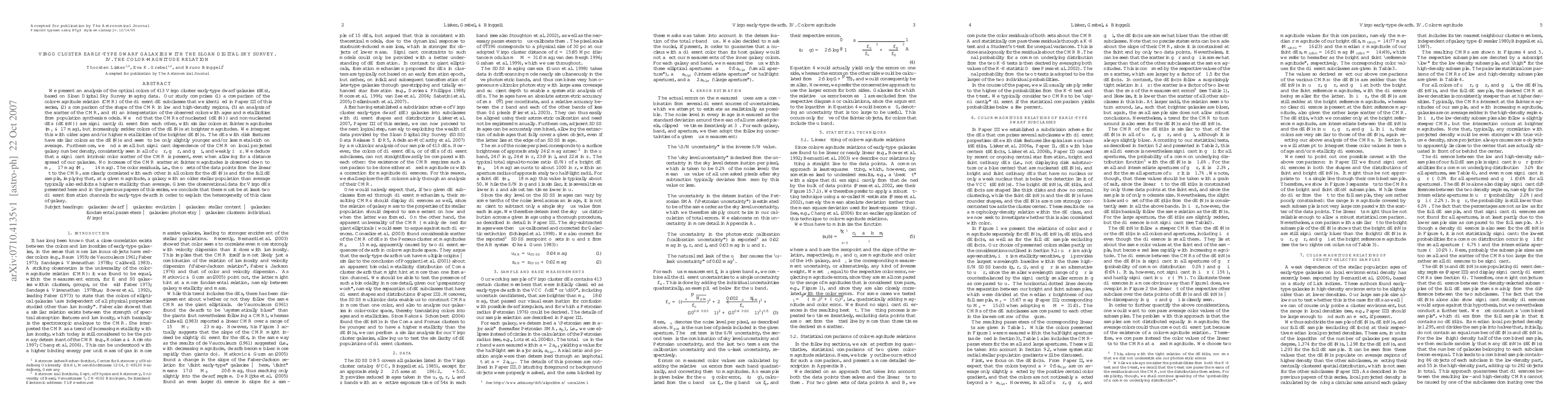 We present an analysis of the optical colors of 413 Virgo cluster early-type dwarf galaxies (dEs), based on Sloan Digital Sky Survey imaging data. Our study comprises (1) a comparison of the color-magnitude relation (CMR) of the different dE subclasses that we identified in Paper III of this series, (2) a comparison of the shape of the CMR in low and high-density regions, (3) an analysis of the scatter of the CMR, and (4) an interpretation of the observed colors with ages and metallicities from population synthesis models. We find that the CMRs of nucleated (dE(N)) and non-nucleated dEs (dE(nN)) are significantly different from each other, with similar colors at fainter magnitudes (r > 17 mag), but increasingly redder colors of the dE(N)s at brighter magnitudes. We interpret this with older ages and/or higher metallicities of the brighter dE(N)s. The dEs with disk features have similar colors as the dE(N)s and seem to be only slightly younger and/or less metal-rich on average. Furthermore, we find a small but significant dependence of the CMR on local projected galaxy number density, consistently seen in all of u-r, g-r, and g-i, and weakly i-z. We deduce that a significant intrinsic color scatter of the CMR is present, even when allowing for a distance spread of our galaxies. No increase of the CMR scatter at fainter magnitudes is observed down to r = 17 mag (Mr = -14 mag). The color residuals, i.e., the offsets of the data points from the linear fit to the CMR, are clearly correlated with each other in all colors for the dE(N)s and for the full dE sample. We conclude that there must be at least two different formation channels for early-type dwarfs in order to explain the heterogeneity of this class of galaxy. (Abridged)