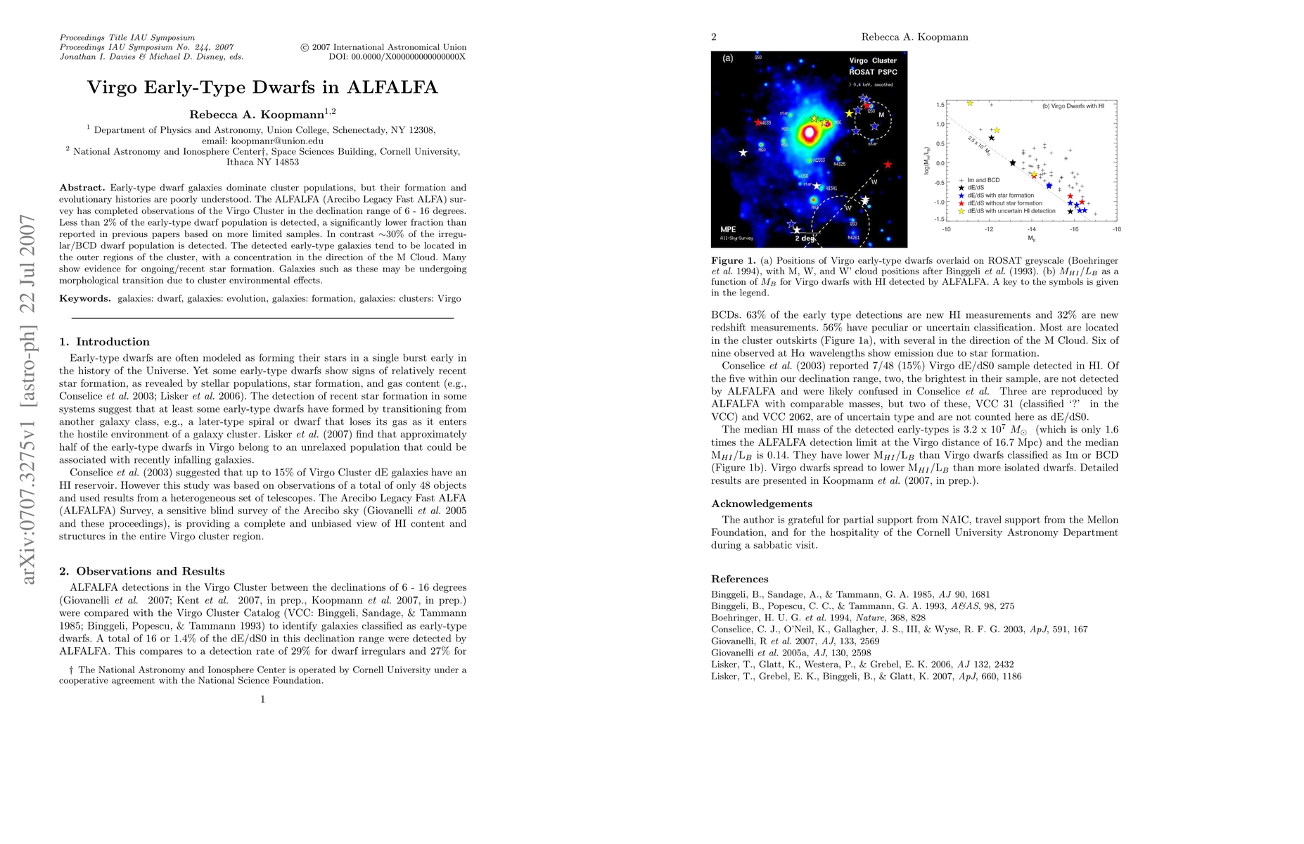 Early-type dwarf galaxies dominate cluster populations, but their formation and evolutionary histories are poorly understood. The ALFALFA (Arecibo Legacy Fast ALFA) survey has completed observations of the Virgo Cluster in the declination range of 6 - 16 degrees. Less than 2% of the early-type dwarf population is detected, a significantly lower fraction than reported in previous papers based on more limited samples. In contrast ~30 of the irregular/BCD dwarf population is detected. The detected early-type galaxies tend to be located in the outer regions of the cluster, with a concentration in the direction of the M Cloud. Many show evidence for ongoing/recent star formation. Galaxies such as these may be undergoing morphological transition due to cluster environmental effects.