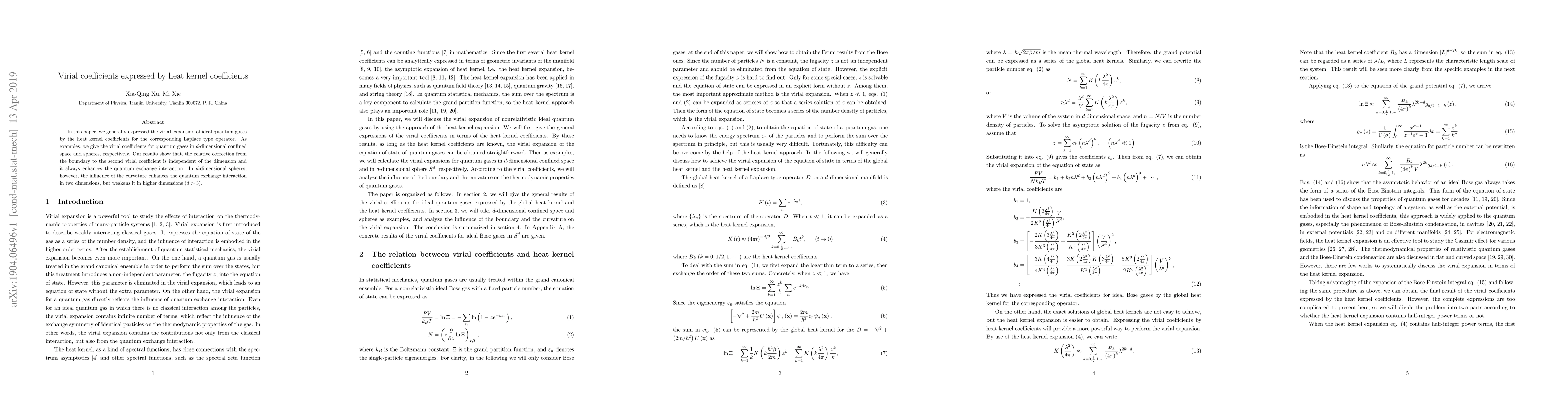 This paper expresses the virial expansion of ideal quantum gases using heat kernel coefficients associated with a Laplace-type operator. It demonstrates that the relative correction to the second virial coefficient is dimension-independent and enhances quantum exchange interaction, while curvature effects in $d$-dimensional spheres enhance this interaction in 2D but weaken it in higher dimensions ($d>3$).