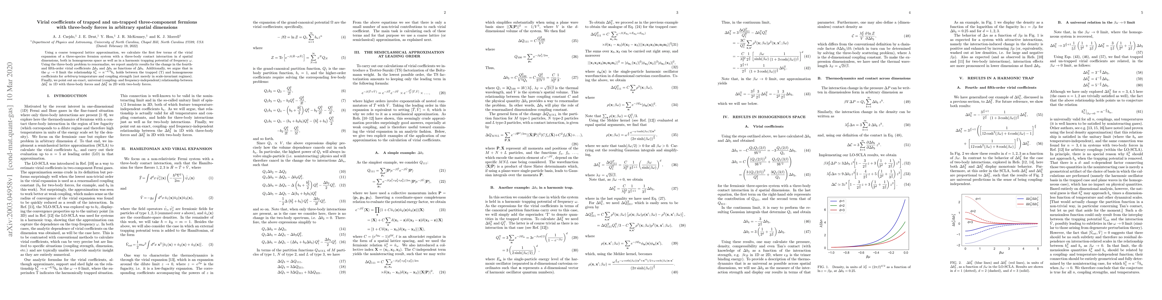 Researchers calculated virial coefficients for a three-species fermion system with a three-body interaction in various dimensions, including trapped and un-trapped scenarios.