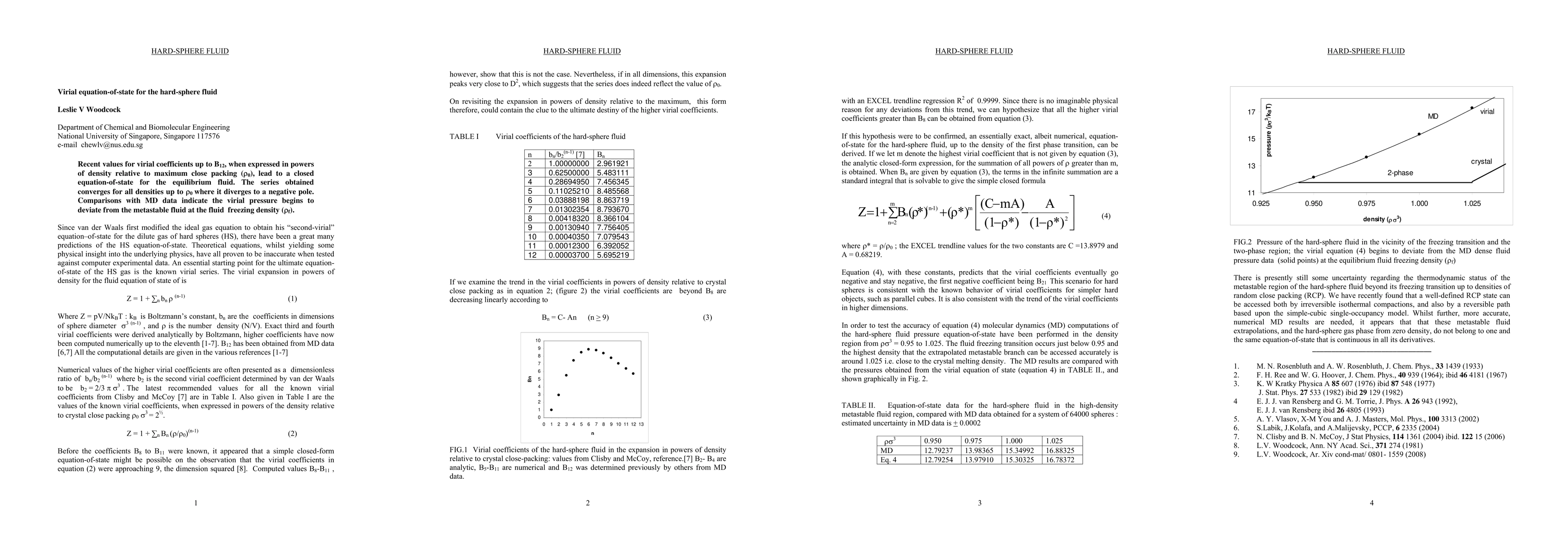 Recent values for virial coefficients up to B12, when expressed in powers of density relative to maximum close packing,lead to a closed equation-of-state for the equilibrium fluid. The series obtained converges for all densities;it becomes negative and diverges to a negative pole at maximum packing. MD data for 64000 spheres in the metastable region shows the virial pressure begins to deviate at the fluid freezing density.