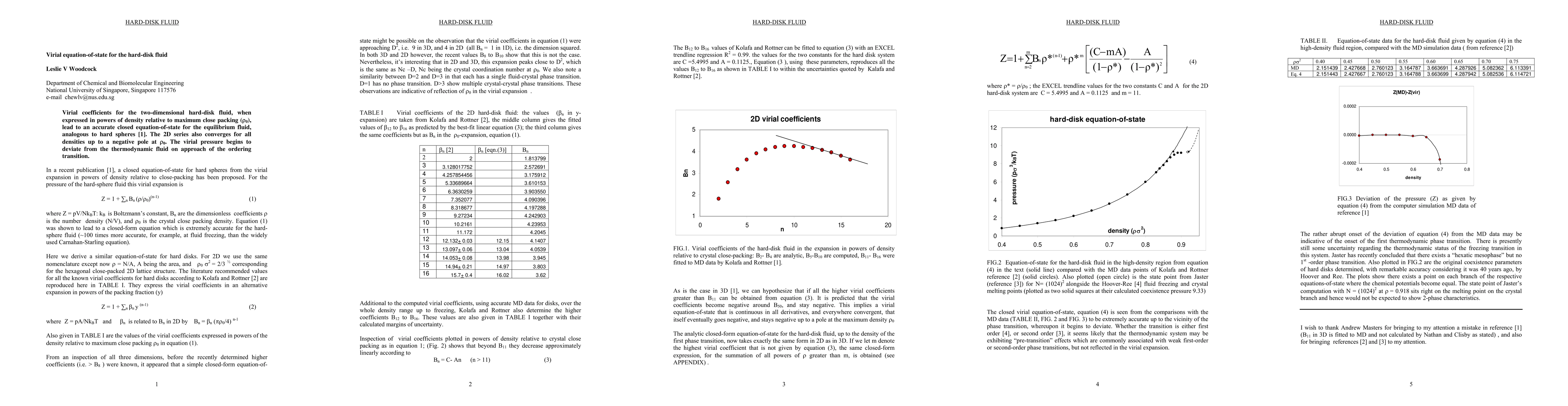 Virial coefficients for the two-dimensional hard-disk fluid, when expressed in powers of density relative to maximum close packing, lead to an accurate closed equation-of-state for the equilibrium fluid, analogous to that recently found for hard spheres. The 2D series also converges for all densities up to a negative pole at close packing density. The virial pressure begins to deviate from the thermodynamic fluid in the approach to the ordering transition.