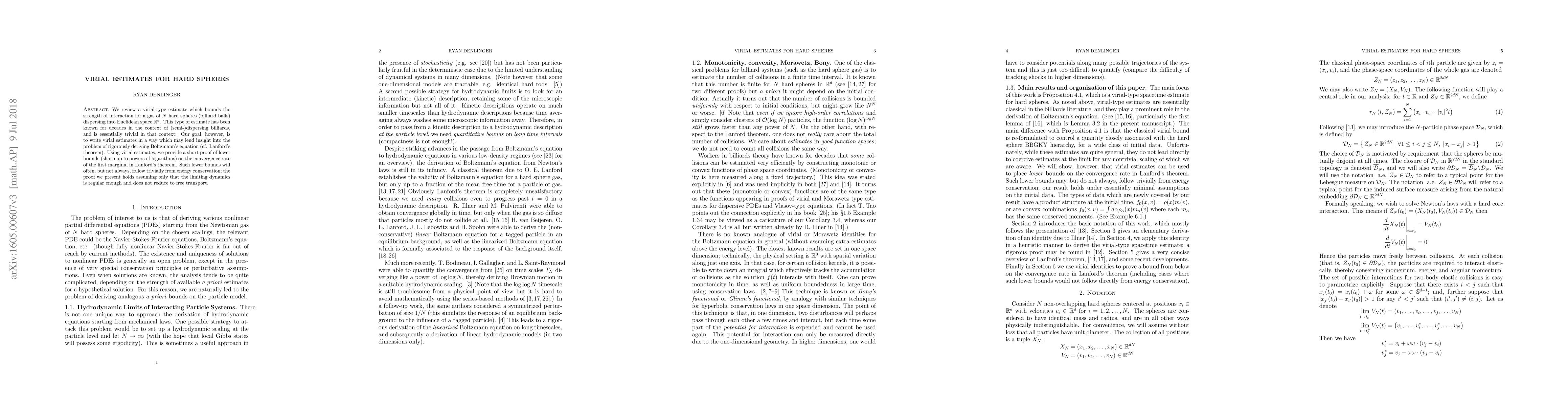 We review a virial-type estimate which bounds the strength of interaction for a gas of $N$ hard spheres (billiard balls) dispersing into Euclidean space $\mathbb{R}^d$. This type of estimate has been known for decades in the context of (semi-)dispersing billiards, and is essentially trivial in that context. Our goal, however, is to write virial estimates in a way which may lend insight into the problem of rigorously deriving Boltzmann's equation (cf. Lanford's theorem). Using virial estimates, we provide a short proof of lower bounds (sharp up to powers of logarithms) on the convergence rate of the first marginal in Lanford's theorem. Such lower bounds will often, but not always, follow trivially from energy conservation, the proof we present holds assuming only that the limiting dynamics is regular enough and does not reduce to free transport.