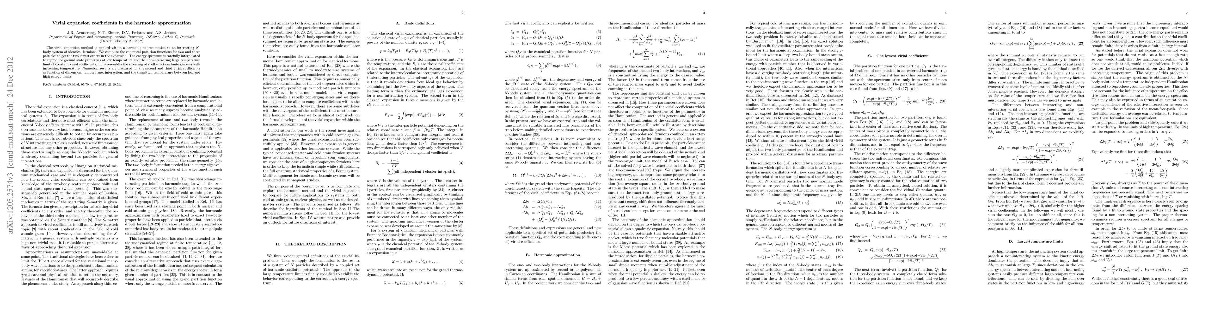 The virial expansion method is applied within a harmonic approximation to an interacting N-body system of identical fermions. We compute the canonical partition functions for two and three particles to get the two lowest orders in the expansion. The energy spectrum is carefully interpolated to reproduce ground state properties at low temperature and the non-interacting large temperature limit of constant virial coefficients. This resembles the smearing of shell effects in finite systems with increasing temperature. Numerical results are discussed for the second and third virial coefficients as function of dimension, temperature, interaction, and the transition temperature between low and high energy limits.