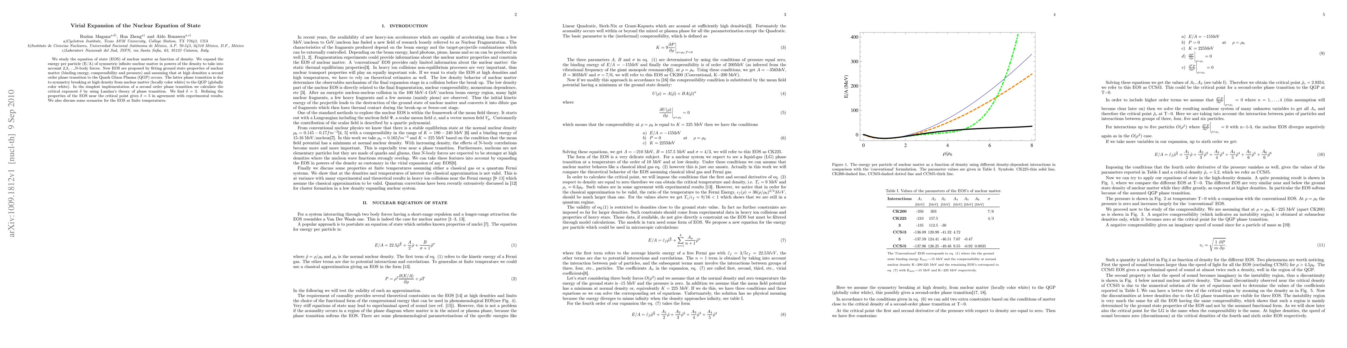This paper proposes a virial expansion for the nuclear equation of state (EOS) by incorporating 2-N body forces, fitting it to ground state properties, and considering a second-order phase transition to Quark Gluon Plasma at high densities. The critical exponent is refined to match experimental results, yielding a value of 5.