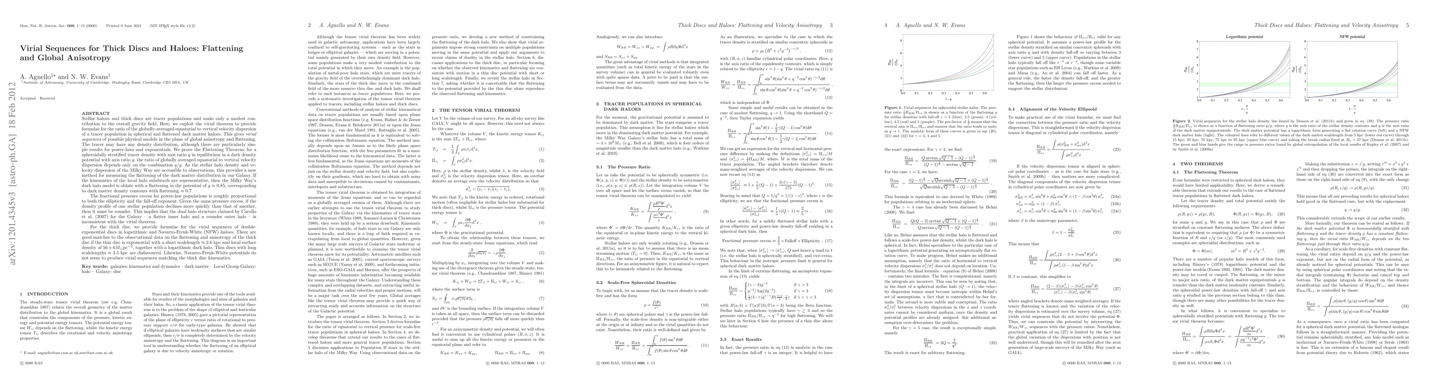 The virial theorem prescribes the ratio of the globally-averaged equatorial to vertical velocity dispersion of a tracer population in spherical and flattened dark haloes. This gives sequences of physical models in the plane of global anisotropy and flattening. The tracer may have any density, though there are particularly simple results for power-laws and exponentials. We prove the flattening theorem: for a spheroidally stratified tracer density with axis ratio q in a dark density potential with axis ratio g, the ratio of globally averaged equatorial to vertical velocity dispersion depends only on q/g. As the stellar halo density and velocity dispersion of the Milky Way are accessible to observations, this provides a new method for measuring the flattening of the dark matter. If the kinematics of the local halo subdwarfs are representative, then the Milky Way's dark halo is oblate with a flattening in the potential of g ~ 0.85, corresponding to a flattening in the dark matter density of ~ 0.7. The fractional pressure excess for power-law populations is roughly proportional to both the ellipticity and the fall-off exponent. Given the same pressure excess, if the density profile of one stellar population declines more quickly than that of another, then it must be rounder. This implies that the dual halo structure claimed by Carollo et al. (2007) for the Galaxy, a flatter inner halo and a rounder outer halo, is inconsistent with the virial theorem. For the thick disc, we provide formulae for the virial sequences of double-exponential discs in logarithmic and Navarro-Frenk-White (NFW) haloes. There are good matches to the observational data on the flattening and anisotropy of the thick disc if the thin disc is exponential with a short scalelength ~ 2.6 kpc and normalisation of 56 solar masses per square parsec, together with a logarithmic dark halo.