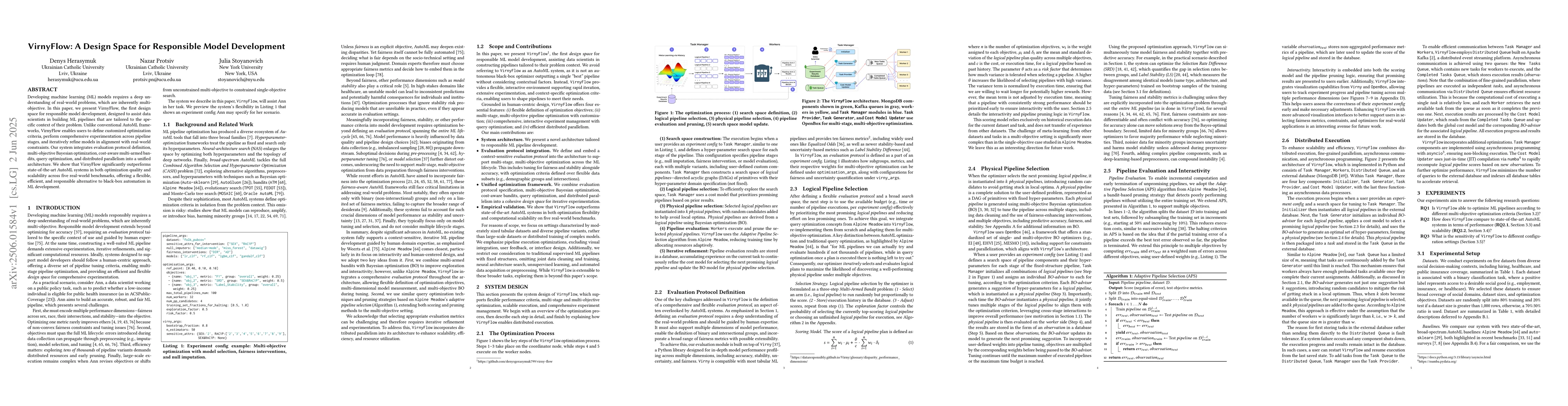 The paper introduces VirnyFlow, a design space for responsible model development, integrating evaluation protocol definition, multi-objective Bayesian optimization, cost-aware multi-armed bandits, query optimization, and distributed parallelism into a unified architecture.