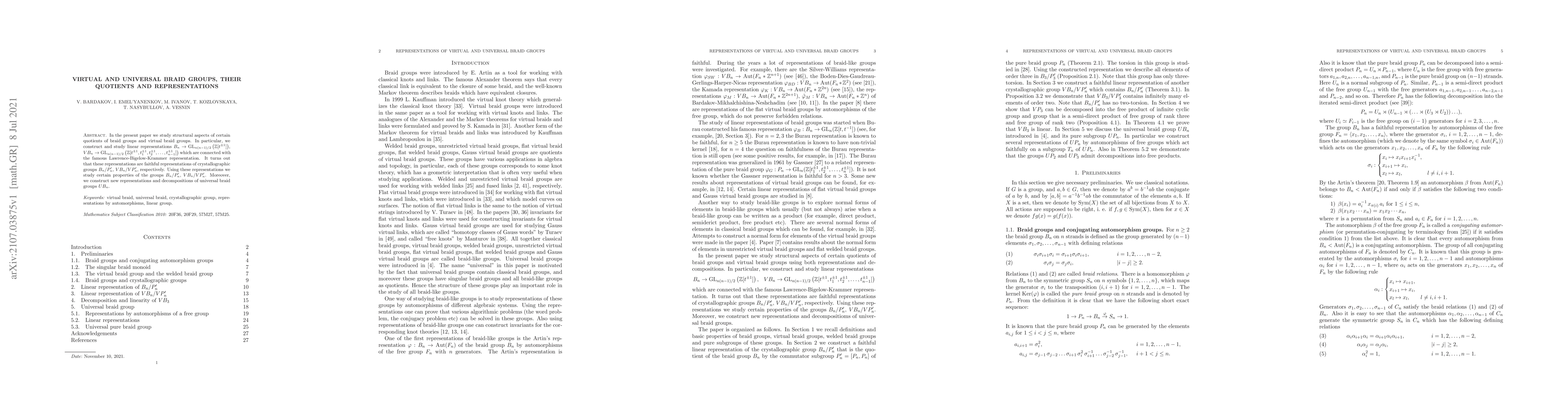 This paper explores structural properties and representations of braid groups and virtual braid groups, focusing on faithful linear representations linked to the Lawrence-Bigelow-Krammer representation. It also investigates new representations and decompositions of universal braid groups.