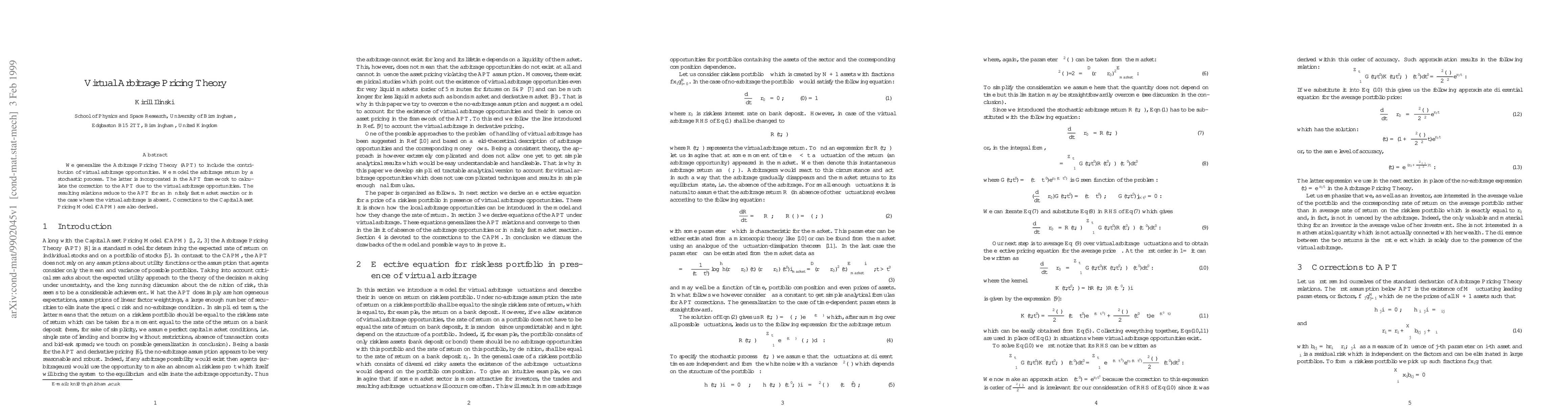 This paper extends the Arbitrage Pricing Theory (APT) to account for virtual arbitrage opportunities, modeling the arbitrage return as a stochastic process and deriving corrections to both APT and the Capital Asset Pricing Model (CAPM) based on these opportunities. The results revert to traditional APT when market reaction is infinitely fast or virtual arbitrage is absent.