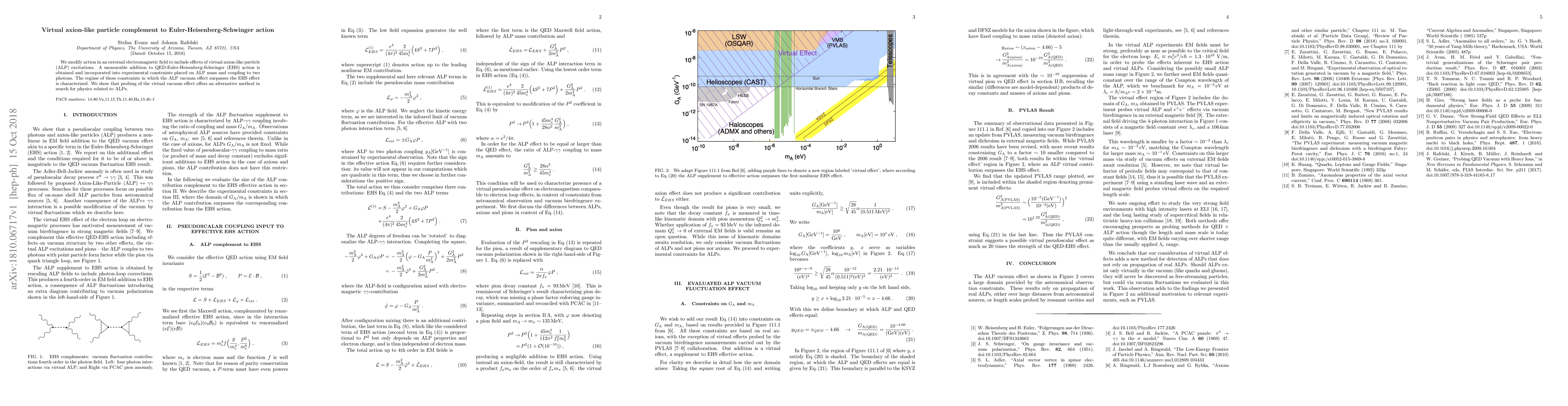 This paper modifies the QED-Euler-Heisenberg-Schwinger action to include virtual axion-like particle excitations, providing a measurable addition that enhances experimental constraints on ALP mass and photon coupling. It explores the regime where the ALP vacuum effect exceeds the EHS effect, suggesting a new method for probing axion-like particles.