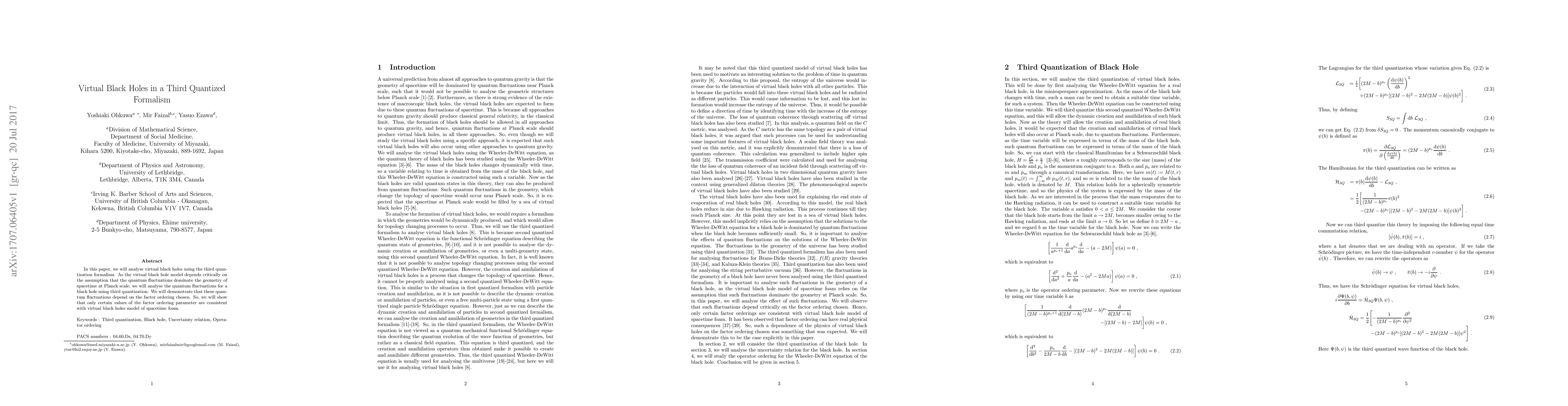 This paper explores virtual black holes through the third quantization formalism, demonstrating that quantum fluctuations significantly influence spacetime geometry at the Planck scale. It concludes that only specific factor orderings align with the virtual black hole model of spacetime foam.