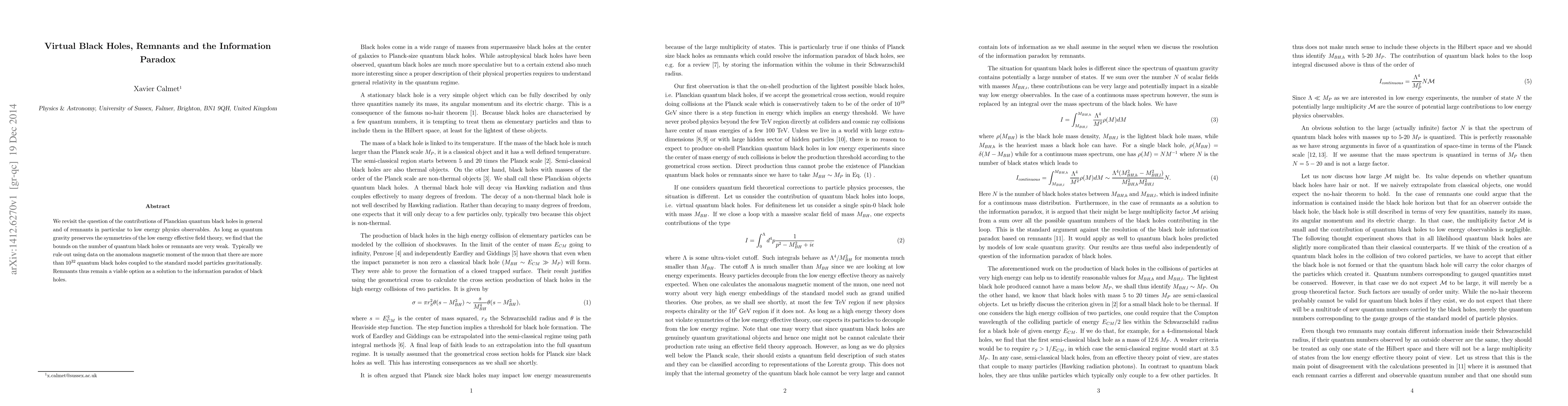 We revisit the question of the contributions of Planckian quantum black holes in general and of remnants in particular to low energy physics observables. As long as quantum gravity preserves the symmetries of the low energy effective field theory, we find that the bounds on the number of quantum black holes or remnants are very weak. Typically we rule out using data on the anomalous magnetic moment of the muon that there are more than $10^{32}$ quantum black holes coupled to the standard model particles gravitationally. Remnants thus remain a viable option as a solution to the information paradox of black holes.