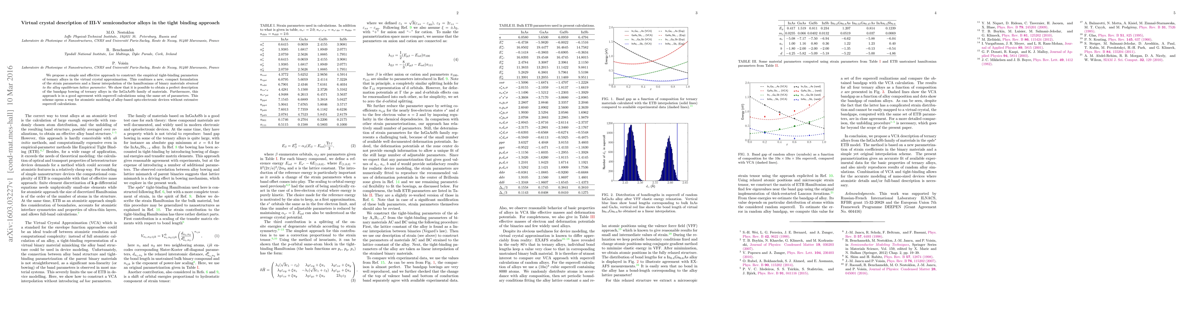 This paper proposes a virtual crystal approximation method to construct empirical tight-binding parameters for ternary III-V semiconductor alloys, achieving a perfect description of bandgap bowing in InGaAsSb materials and aligning well with supercell calculations, facilitating efficient modeling of opto-electronic devices.