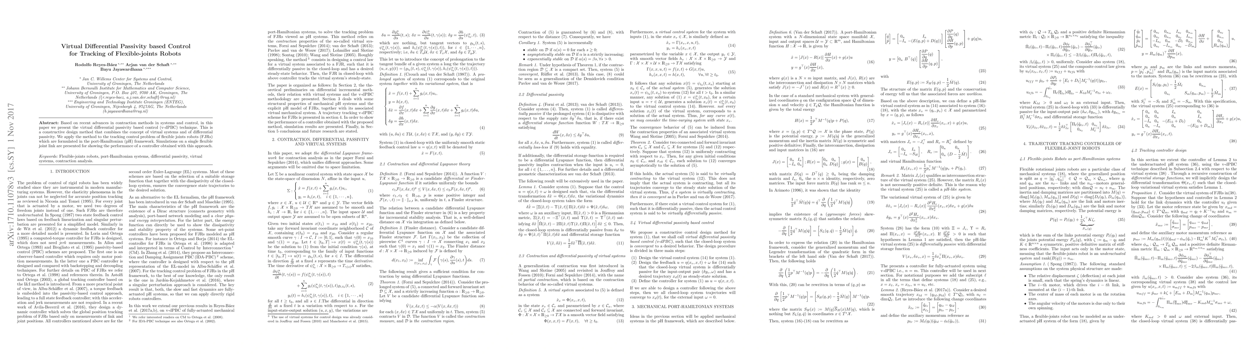 This paper introduces a virtual differential passivity based control (v-dPBC) technique for tracking flexible-joint robots, combining virtual systems and differential passivity within a port-Hamiltonian framework. Simulation results demonstrate the effectiveness of the proposed control method on a single flexible joint link.