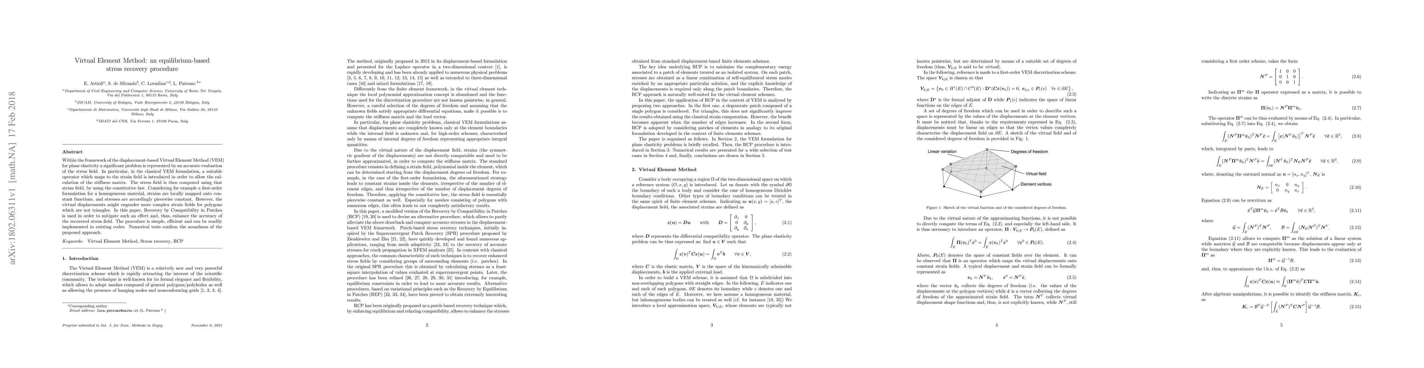 Researchers improved the Virtual Element Method to accurately compute stress fields in elasticity by using a compatibility patch method that recovers strain fields with complex geometries. This approach enhances the accuracy of recovered stress fields.