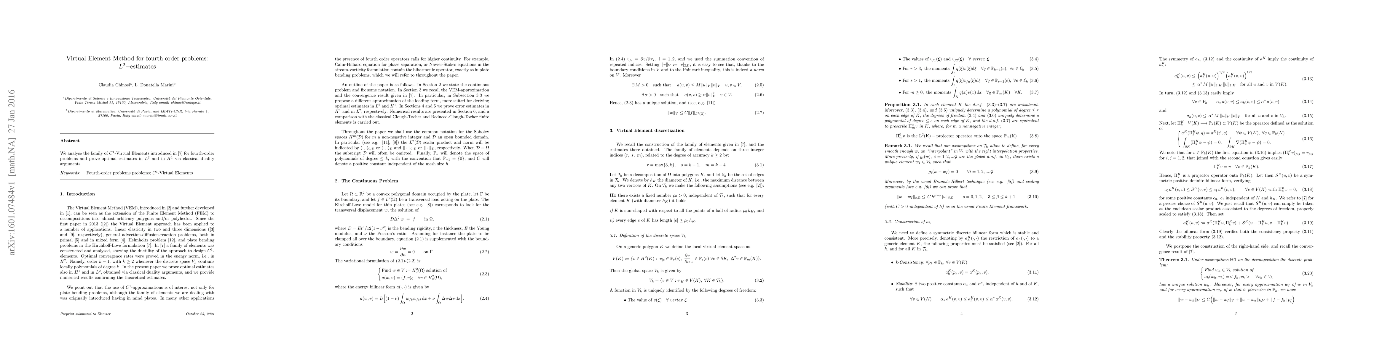 Researchers developed a new method for solving fourth-order problems in virtual element analysis, providing optimal $L^2$ and $H^1$ estimates through classical duality arguments.