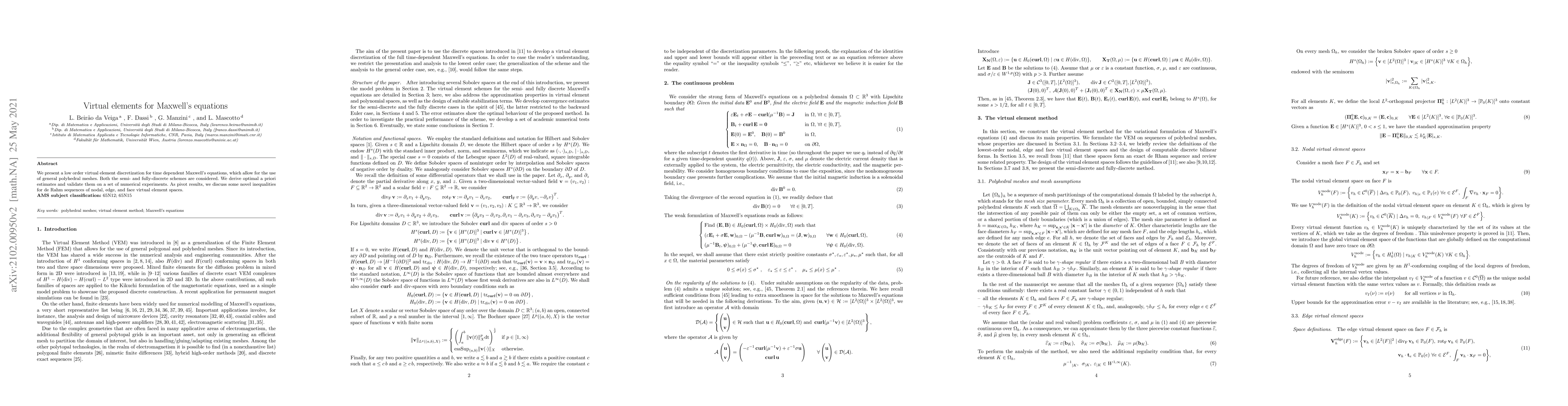 Researchers developed a method to solve Maxwell's equations using virtual elements on general polyhedral meshes, with optimal error estimates and validation results.