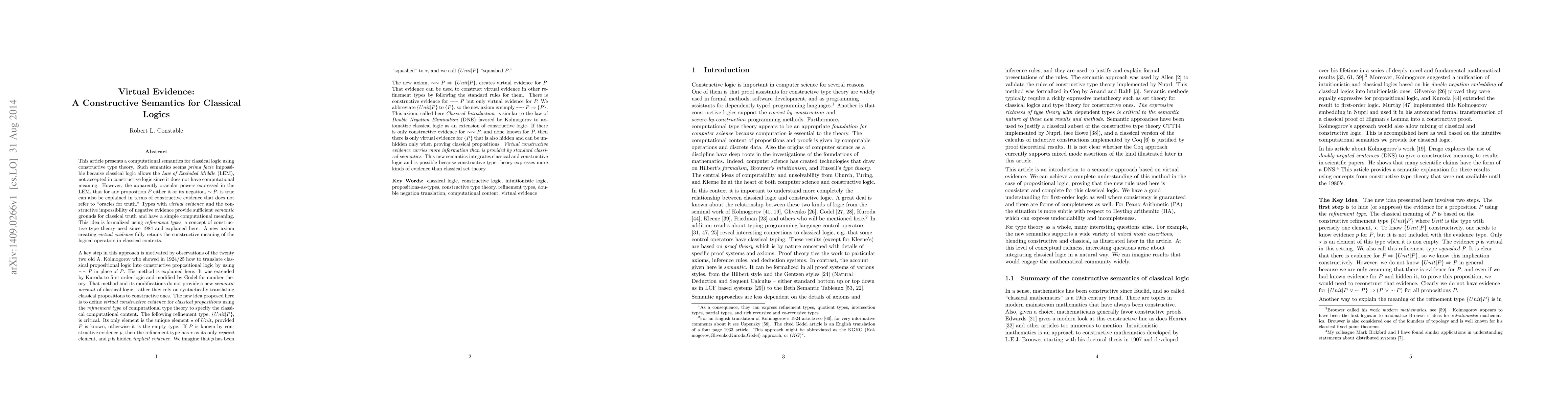 This paper introduces a computational semantics for classical logic through constructive type theory, resolving the paradox of the Law of Excluded Middle by framing it in terms of constructive evidence, thus preserving the computational meaning of classical logic while adhering to constructive principles. The approach utilizes refinement types to formalize the concept of virtual evidence.